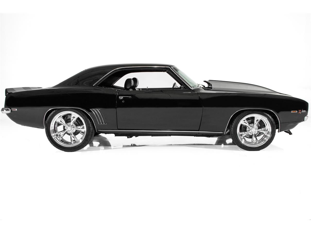 Jet Black 1969 Chevrolet Camaro street beast with a performance built 454, with aluminum heads big ol' fat tires and a bad attitude.