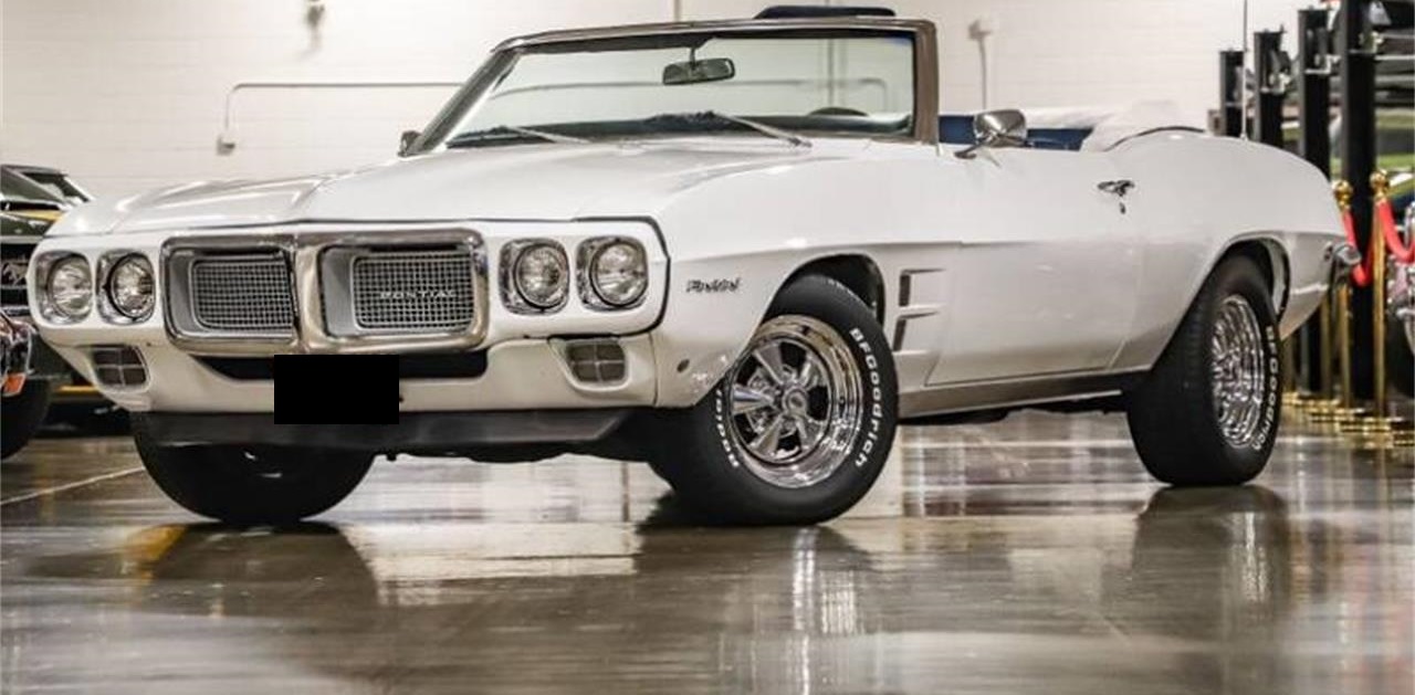 1969 Pontiac Firebird Convertible. California Car - 350ci V8 - White over Blue Blue Top. Cragar SS Chrome Wheels.