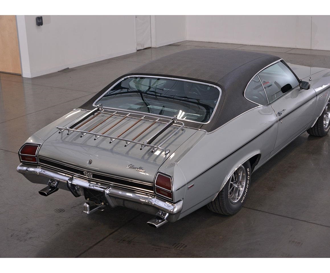 Powered by an impressive bored and balanced 396 engine that is connected to a stout turbo 400 automatic transmission with only 2000 miles on both since the rebuild. Gaze inside and marvel at the over optioned black interior of this Chevelle SS as it comes packed with everything conceivable under the sun. Just to name a few, we start with those 6-way powered drivers and passenger bucket seats, rear Strato bucket seats with rear seat belt retractors, special instrument cluster gauges and factory dash mounted tachometer, driver, passenger remote mirror controls and the coolest of cool horseshoe shifters.