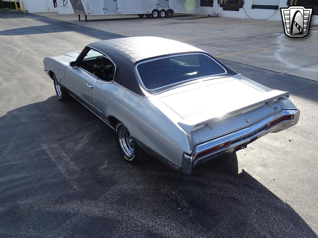 Silver Mist Metallic exterior with Black Vinyl top combines perfectly with the Black Vinyl interior. The car is equipped with the massive GS 455 CID V8 originally billed as a 360-horsepower engine and 510 pounds/feet of torque. It also low restriction exhaust, performance axle with posi-traction, and a Turbo Hydromatic 400 3-speed automatic transmission, full-length console, bucket seats, power disc brakes, power steering, AM/FM radio, chrome-plated Rally wheels, Rally Ride Control Package, air conditioning, seat belts, tinted glass, and more. This beautiful numbers matching is in excellent condition.