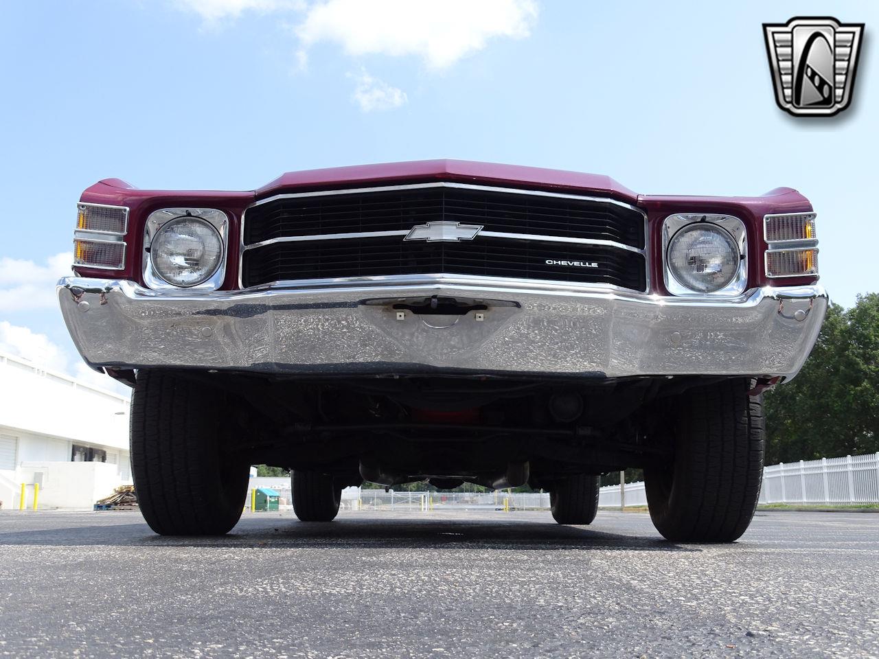 454 under the hood producing some serious horsepower. It features roller rockers and a Holley 750 double pumper carb feeding this monster just the right amount of fuel. The TH400 transmission shifts out nicely with the B&M Shift kit and 2200 stall. The 10 bolt Posi rear end with 4:11 gears puts the power to the ground blasting both tires. The paint is slick with the burgundy metallic shining bright to stand out in any crowd.