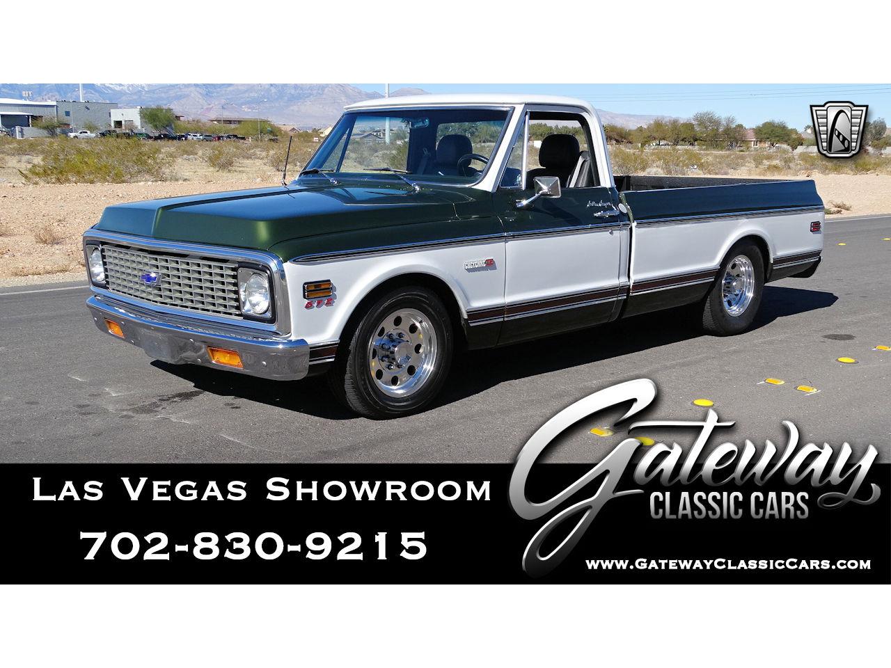 Gateway Classic Cars of Las Vegas welcomes this beautiful 1972 Chevrolet Cheyenne C-20! This Camper Special Long bed is a sure beauty with its green and white color combination and mixes perfectly with the chrome bumpers and polished trim.