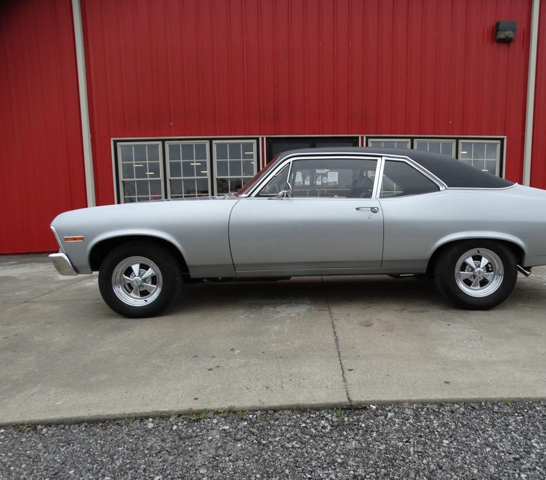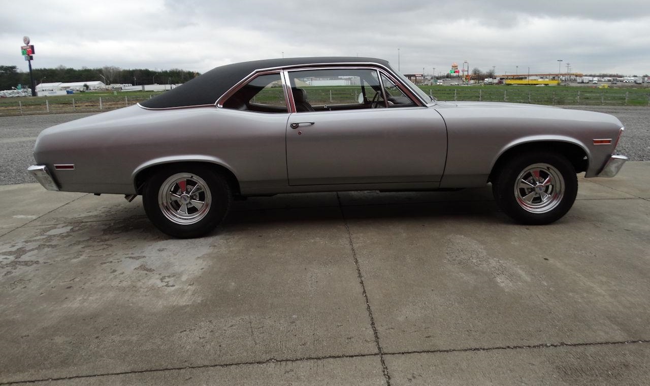 The black vinyl interior is like new and shows little to no wear. The stance is right on this 71 Nova with nice Cragers and radial tires. But the main course is under the hood. The 355 CID V8 has plenty of pep to move you down the road. The 3 speed automatic that shifts nicely and makes this baby really move. Options on this 1971 Chevrolet Nova include: AM Radio, Seat Belts, Vinyl Interior and Radial Tires.