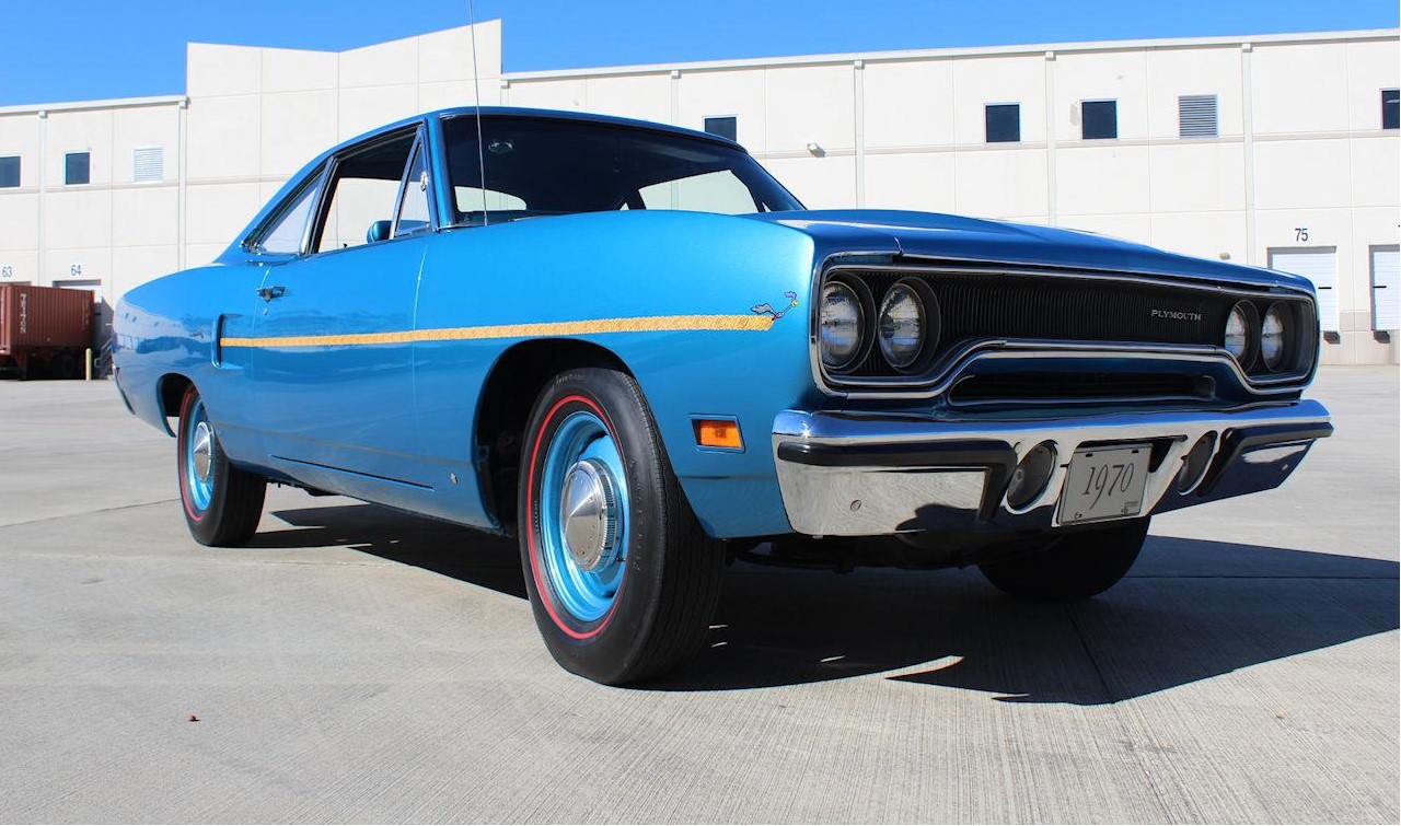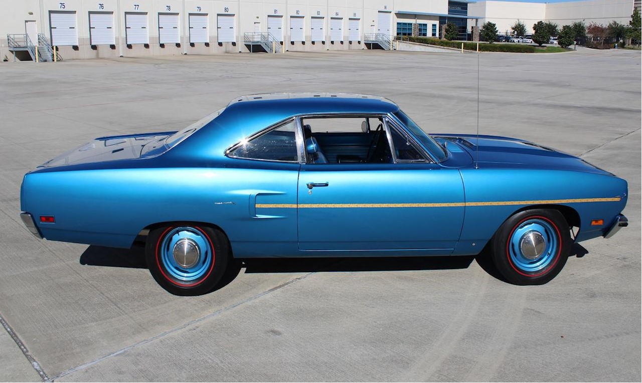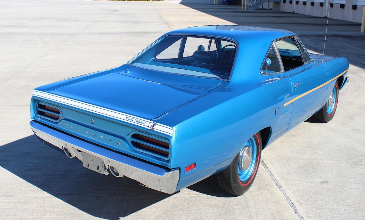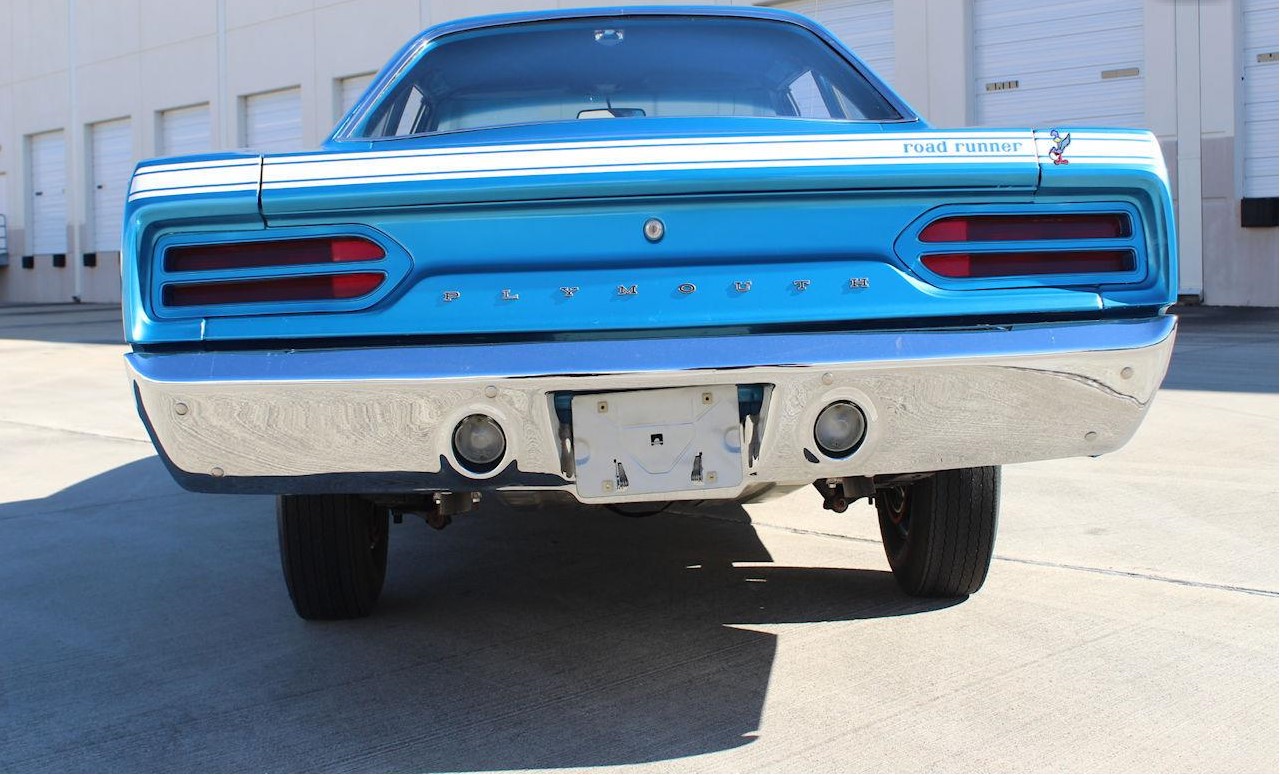 It is powered by its original 4BBL carb-equipped 383 CID V8, which is backed by its original 4-speed manual transmission. It gets all of its 335 horsepower to the ground via its limited-slip Dana 60 rear end, so those Coker re-pops of the Firestone F70-15 "red line" SuperSport tires don't stand a chance if you dump the clutch from a standing start. The ever-present pistol grip shifter really adds to the fun - it just feels good in your hand. The interior looks nearly as good as it did when it left the assembly line and is in the same B5 blue as the exterior. The carpet is in very good condition, panels and trim look great, and the vinyl seating surfaces look almost unused. Its original dash and gauges still look great, as well. Additional features and options on this 1970 Plymouth Road Runner for sale include AM Radio, "Red Line" Bias Ply Tires, Seat Belts, Spare Tire, and Vinyl Interior.