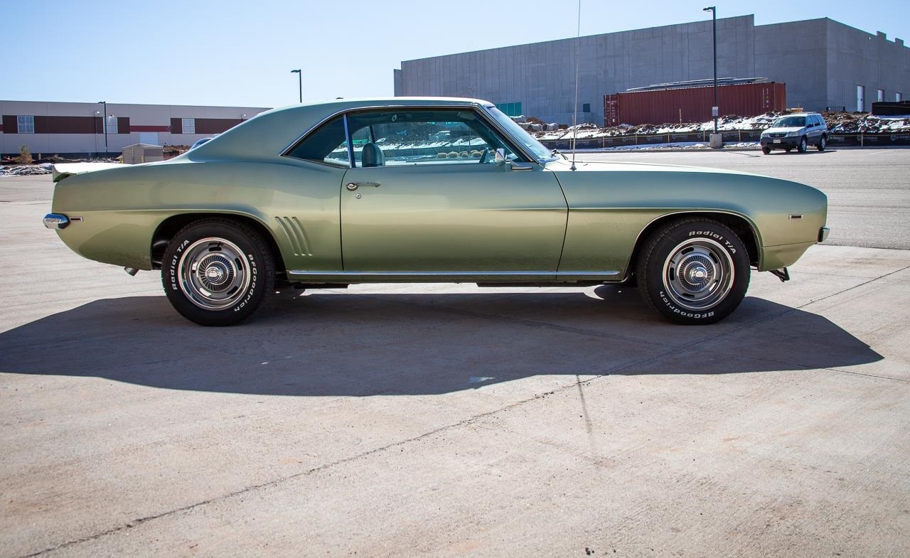 This fine example is equipped with the original 350 Cubic Inch V8 that starts very easily and provides plenty of power to get this Camaro up to speed without blinking an eye. This classic V8 is mated to a floor shifted automatic transmission that shifts very nicely. This all-original classic also has recently refreshed AC to keep you cool on your cruises to come. Original options include: Original Green Paint, and Green Vinyl Interior! Air Conditioning, AM radio, Spare Tire, Hub Caps, Power Brakes, Power Steering, Jack, Seat Belts, Vinyl Interior, and Radial Tires.