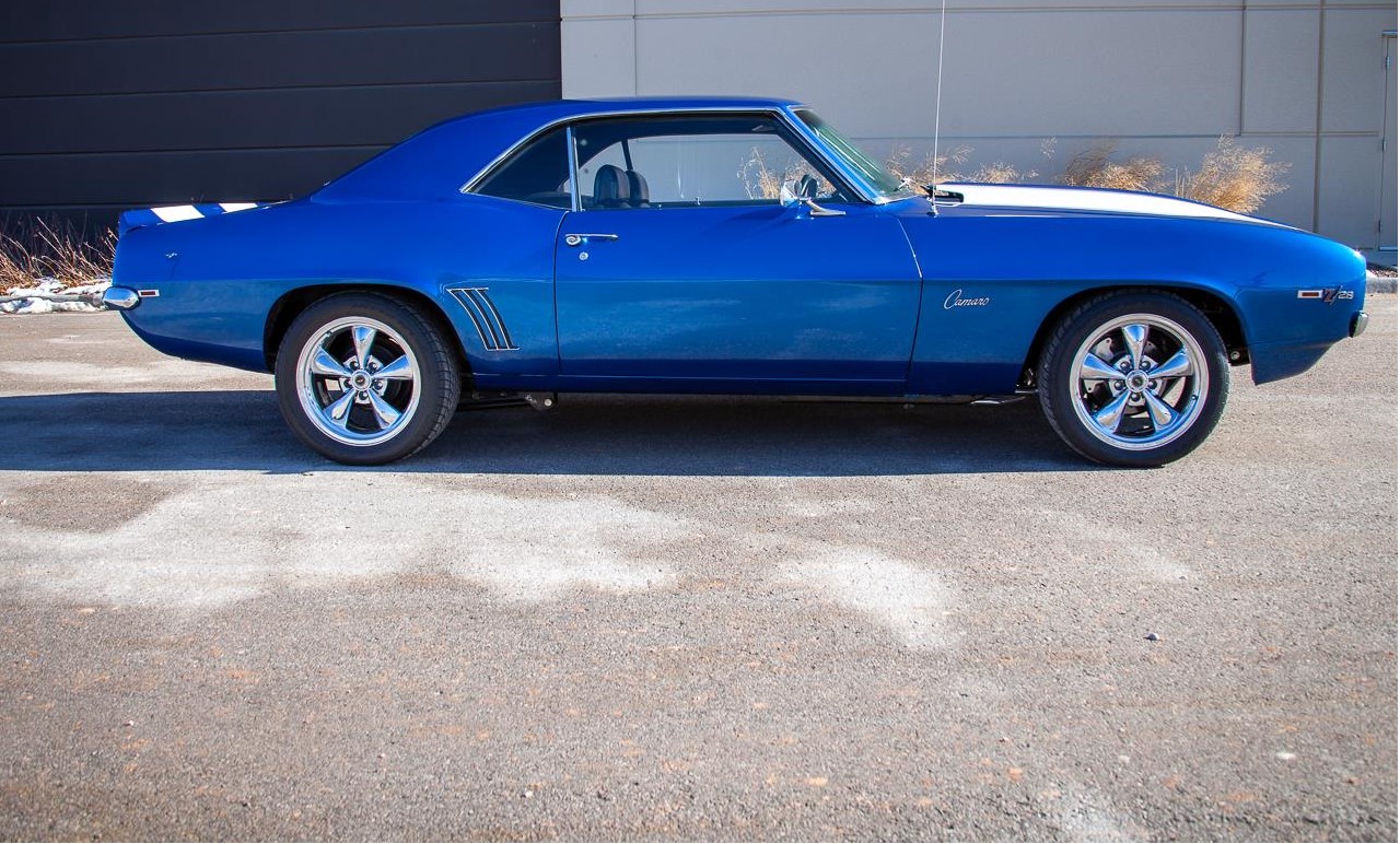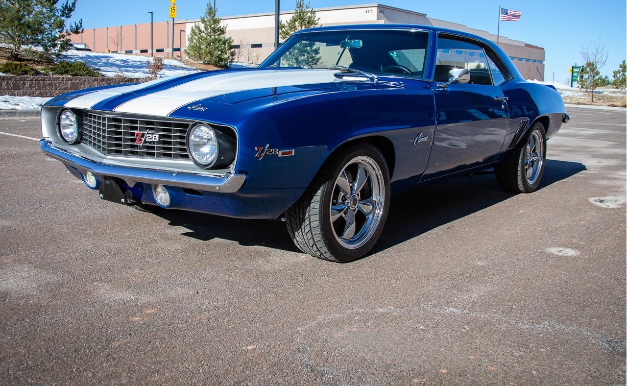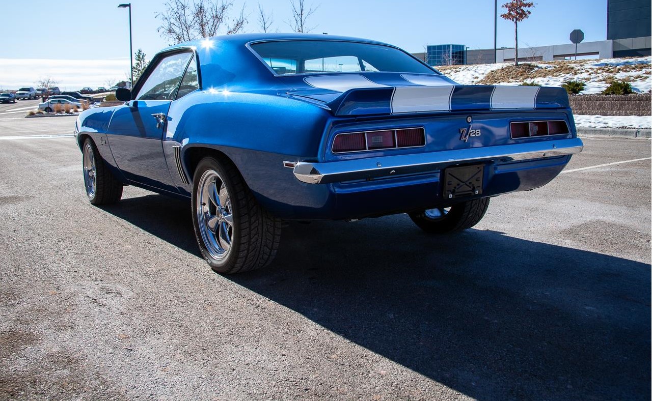 This Beautiful Restomod is housing a 406 C.I. Small Block Chevrolet Stroker. It has Aluminum Heads ,Roller Rockers, Edlebrock Aluminum Intake Manifold, under the Quick Fuel Carburetor .HEI Electronic Ignition. All of which is pushed out the Hooker Ceramic Coated Headers to a Dual Exhausts going through an X pipe and Exiting out the Flow Master Mufflers. The power is put through the Borg Warner 5 Speed Gear Box with a Short Throw shifter, and a Hydraulic Clutch. At the back is a 12 Bolt Posi Rear with a Wheel hop eliminator kit. The drive shaft is Aluminum. Frame off restoration using Energy Suspension and Red Polyurethane frame bushings. CCP Tubular Control Arms. Rack and Pinion Power Steering. SSBC disc Brakes. American Racing Wheels.