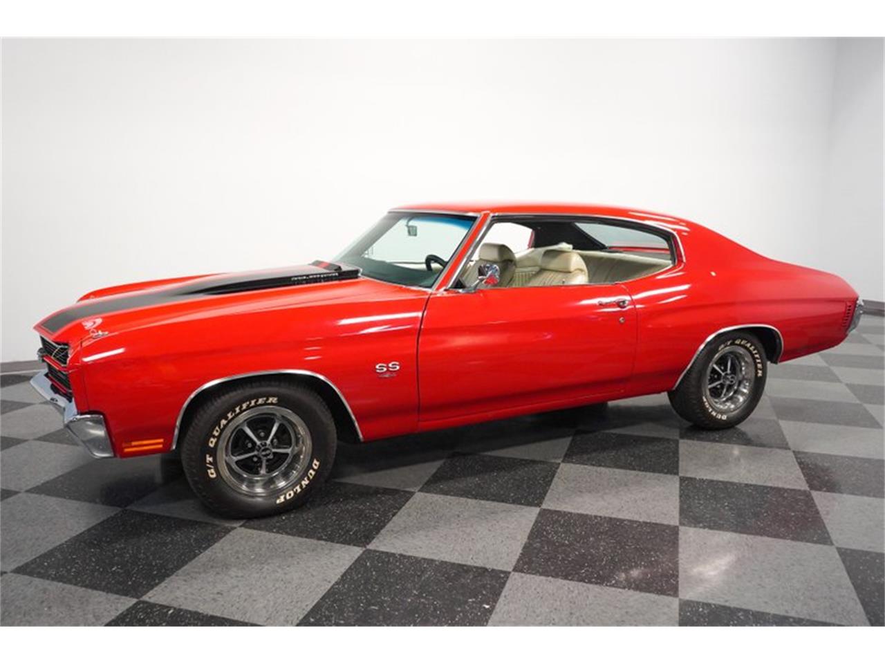 A bright red 1970 Chevrolet Chevelle SS 454 with serious big block power is the kind of thing muscle car dreams are made of.