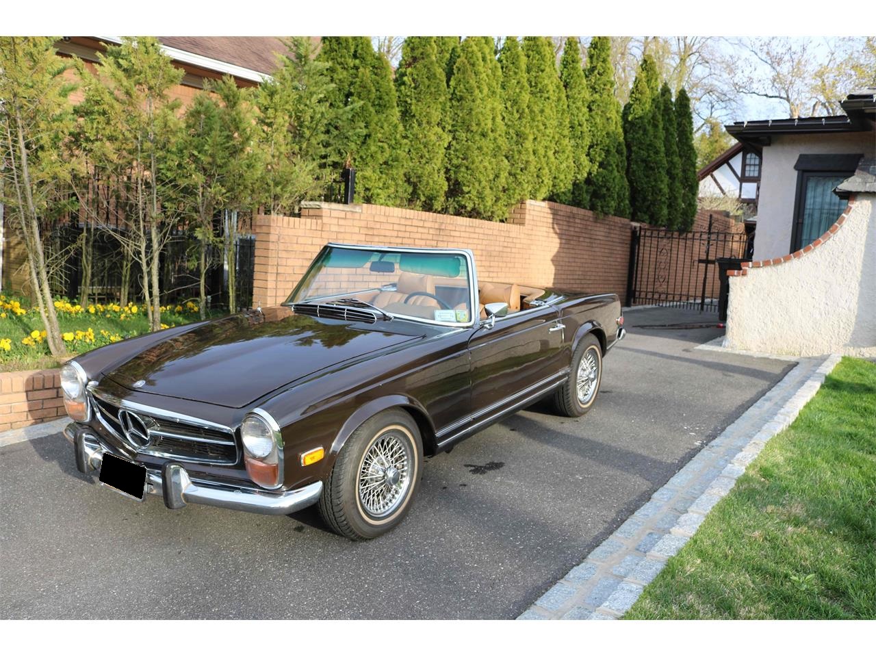 This 1969 Mercedes-Benz 280SL is a lovely original car equipped with two tops, automatic transmission, and factory air conditioning. Dark brown with tan interior and offered with factory hardtop. An overall solid and straight car that's very usable with good paint and chrome. It also has a nice and clean interior. The motor runs strong. Second owner. Garage kept.