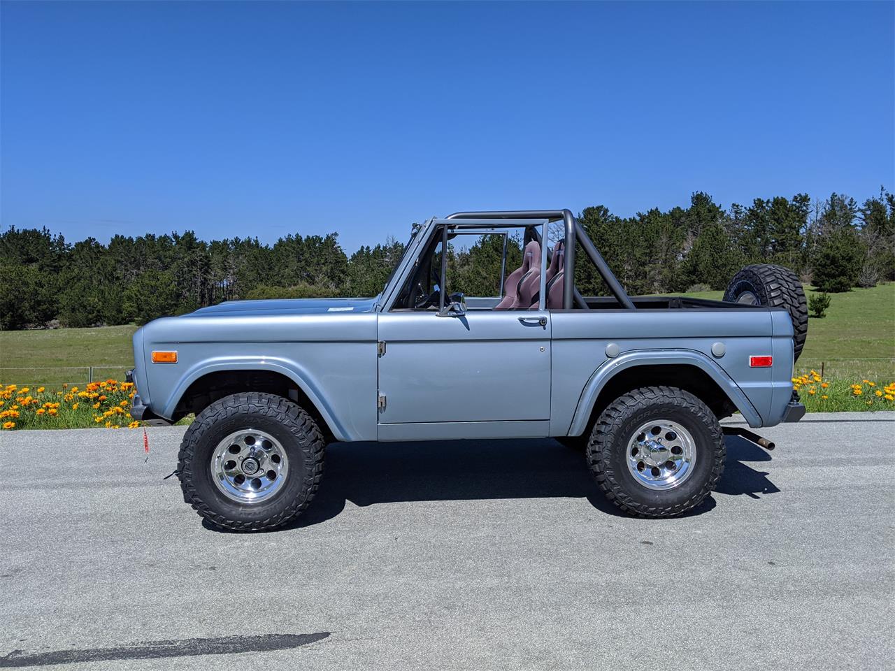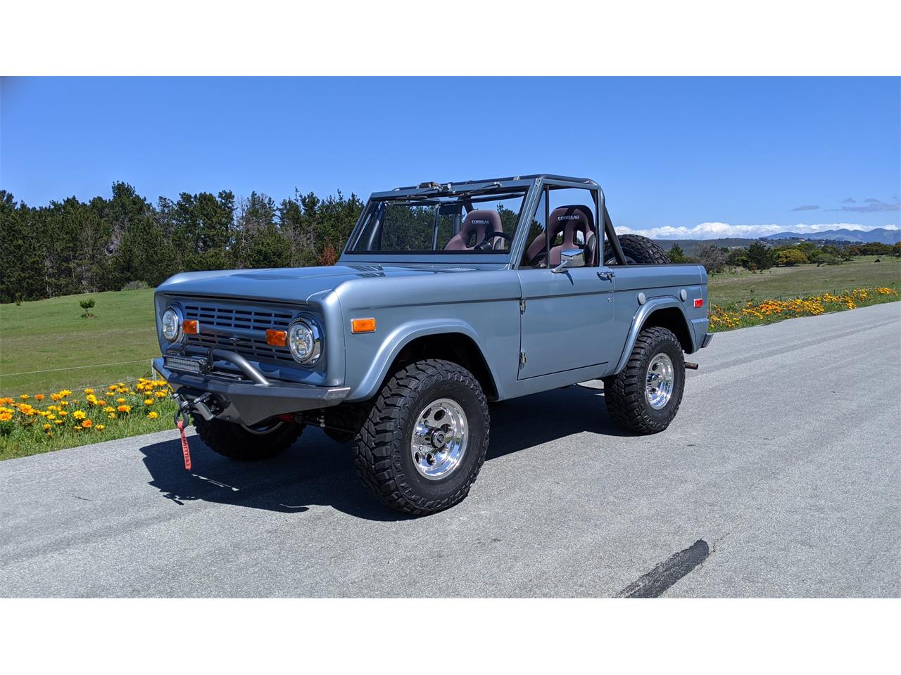 1973 Ford Bronco.Comfortable Corbeau seats and all weather rear bench.