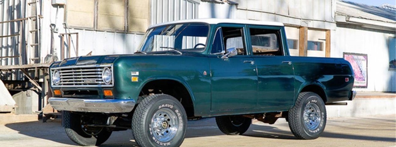 1974 International Wagonmaster ?-ton 4x4 Pickup Long term ownership between two Oklahoma International collectors One of the last Wagonmasters (6/74) built before model ceased production in 1974 Factory-built four-door pick-up based on the more familiar wagon-style Travelall Very limited production made during the 1973 and 1974 model years (extremely few produced in'74) 4x4 Wagonmaster, most were produced in 2WD and marketed as a tow rig Comanche 392 CID V-8 engine with a four-barrel carburetor Borg-Warner four-speed manual transmission Dana 44 front axle with a full-float Dana 60 rear axle with two-speed New Process transfer case 8 lug hubs and wheels Dark Green exterior with russet plaid interior from an International Scout Traveler Power steering and power brakes 60? bed on 119-inch wheelbase and 7,700 GVWR Quiet ride with Dynamat in the floor and headliner Debuting almost 30 years before Chevrolet?s Avalanche, International-Harvester employees ?accidentally? created a four-door pickup truck in the early to mid-1970s.