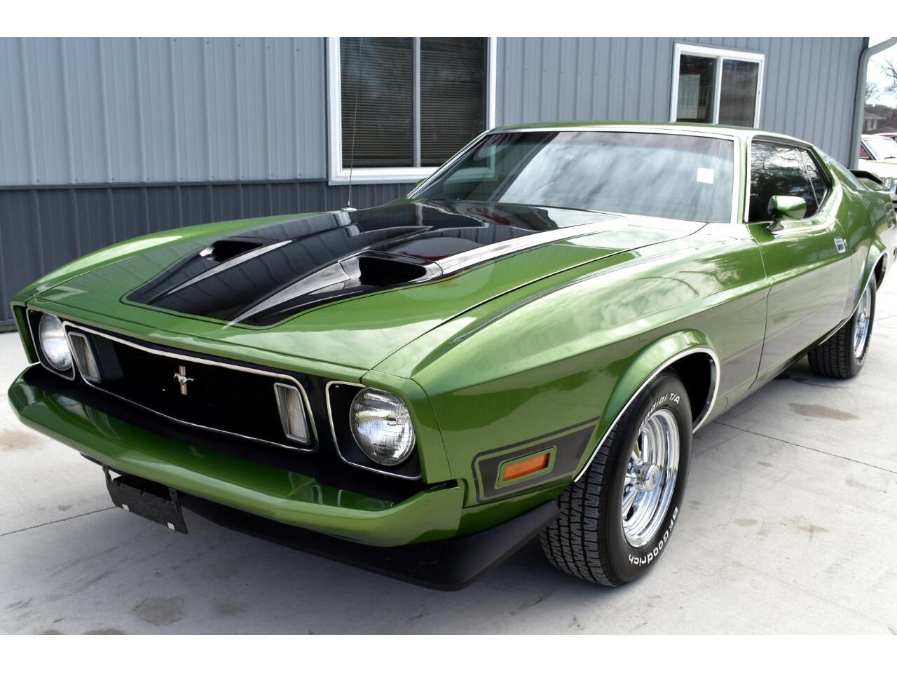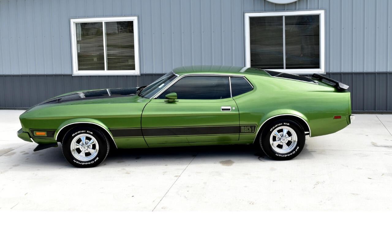 Ready to jump in and enjoy is this Super Clean 1973 Ford Mustang Mach 1 fastback done in its original Ivy Glow paint with black knit bucket seat interior.