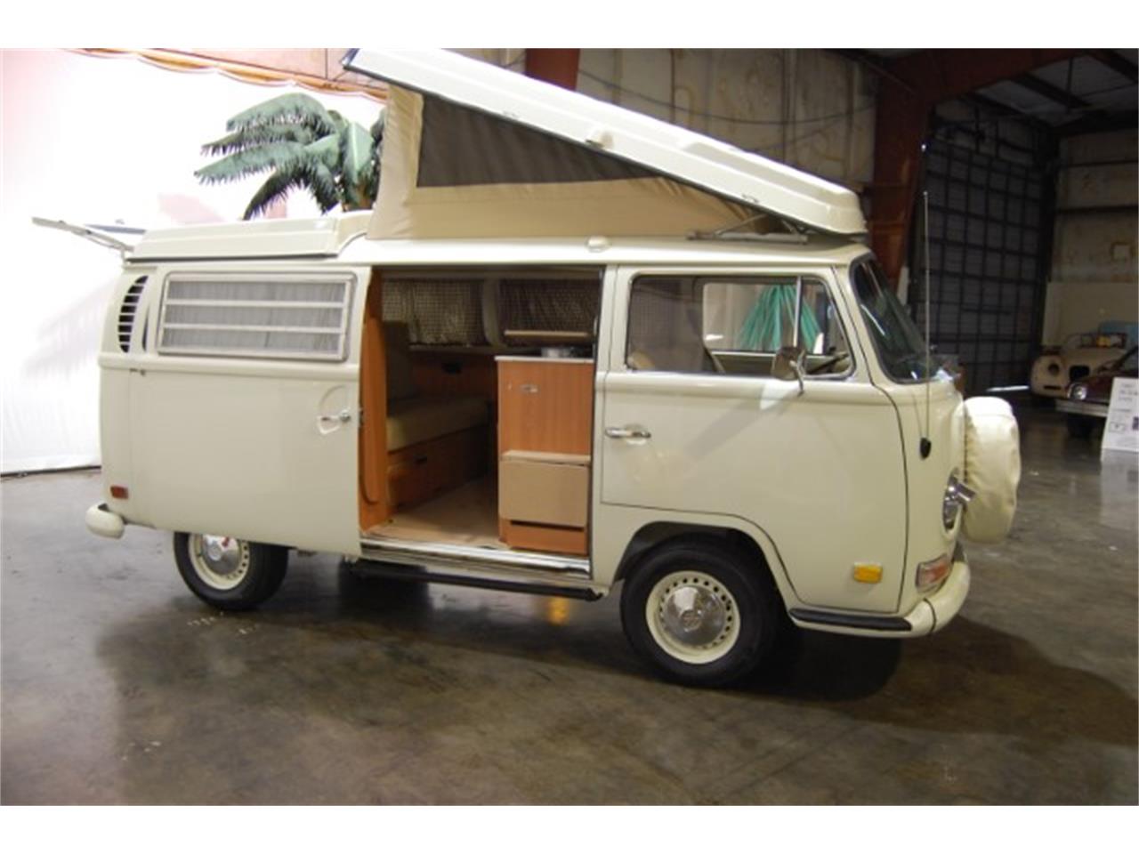 1971 VW Westy Camper Van finished in white with tan interior.