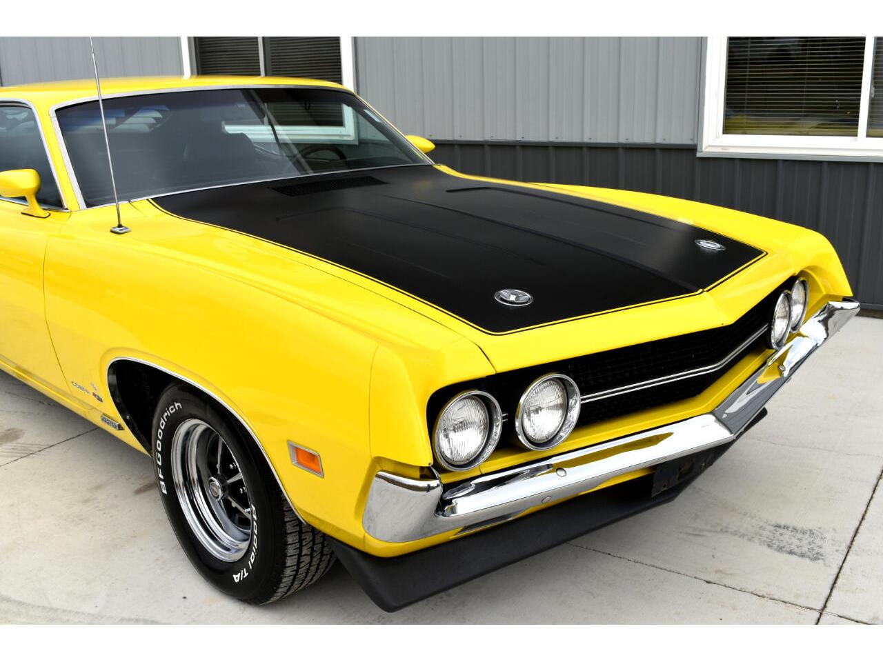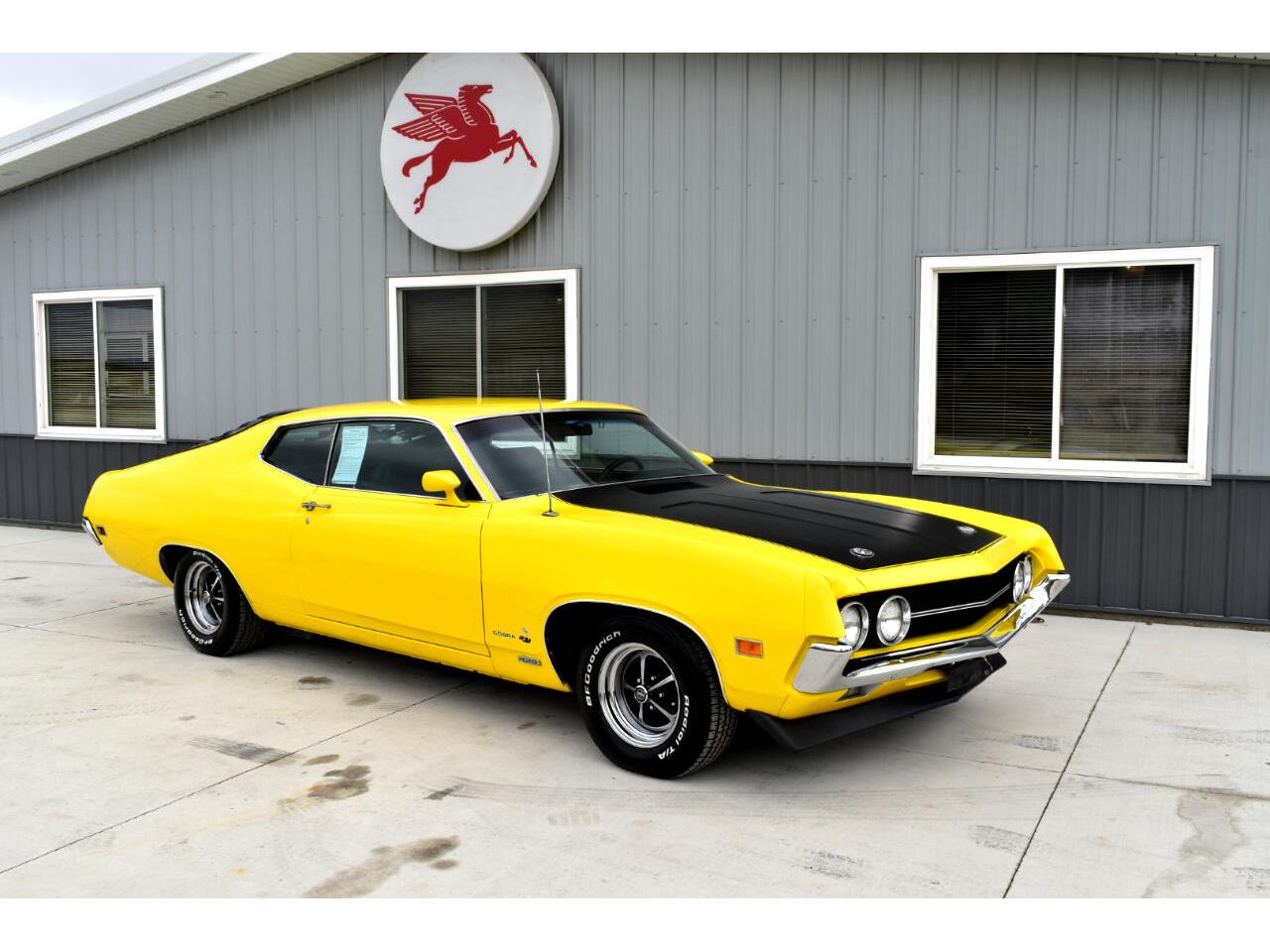 1970 Ford Torino Cobra 429. This Original D Code Bright Yellow 1970 Ford Torino is absolutely Gorgeous! Its powered by its original 429 4bb 370HP Cobra Jet engine backed up by its smooth shifting C6 automatic transmission. Its black bench seat interior is a nice combination of original and looks nice. This Cobra jet 429 sounds great and drives great down the road. It comes equipped with power steering power front disc brakes 3.25 rear end gears rear slats dual sport mirrors dual exhaust and is riding on a nice set of magum 500 rims with RWL tires.