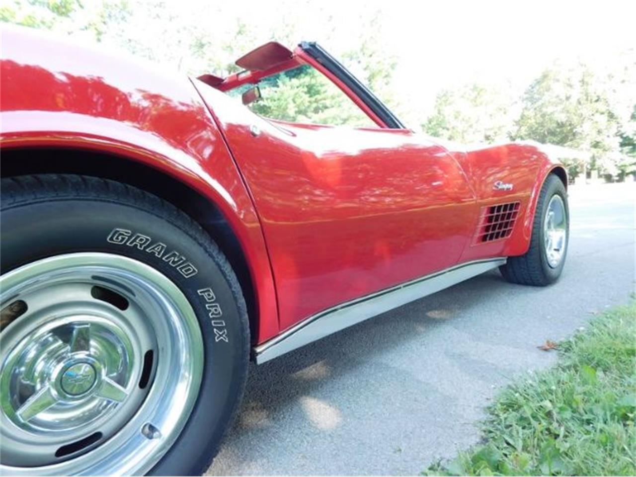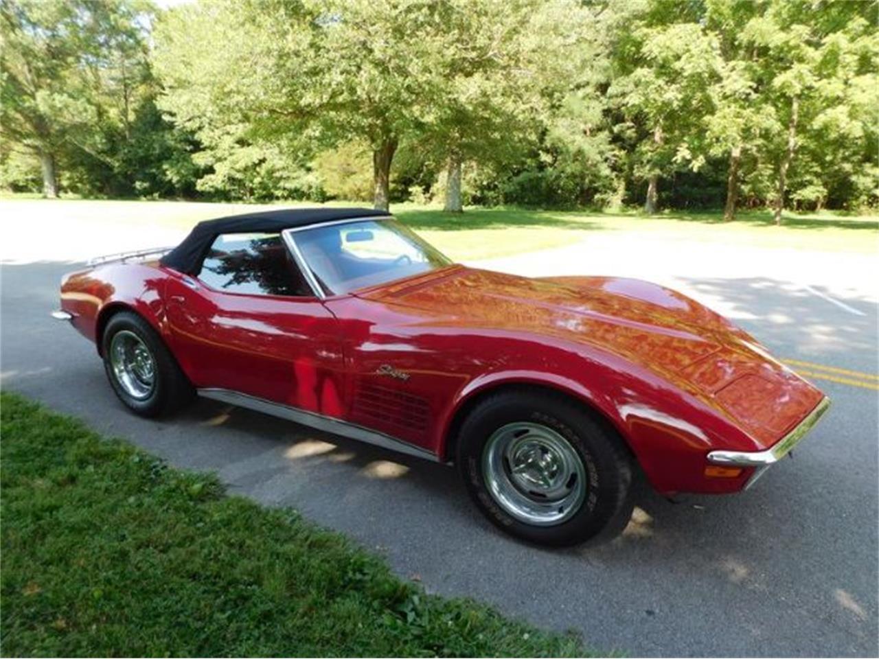 This 1971 Chevrolet Corvette Stingray roadster is Millea Miglia Red with a red interior.