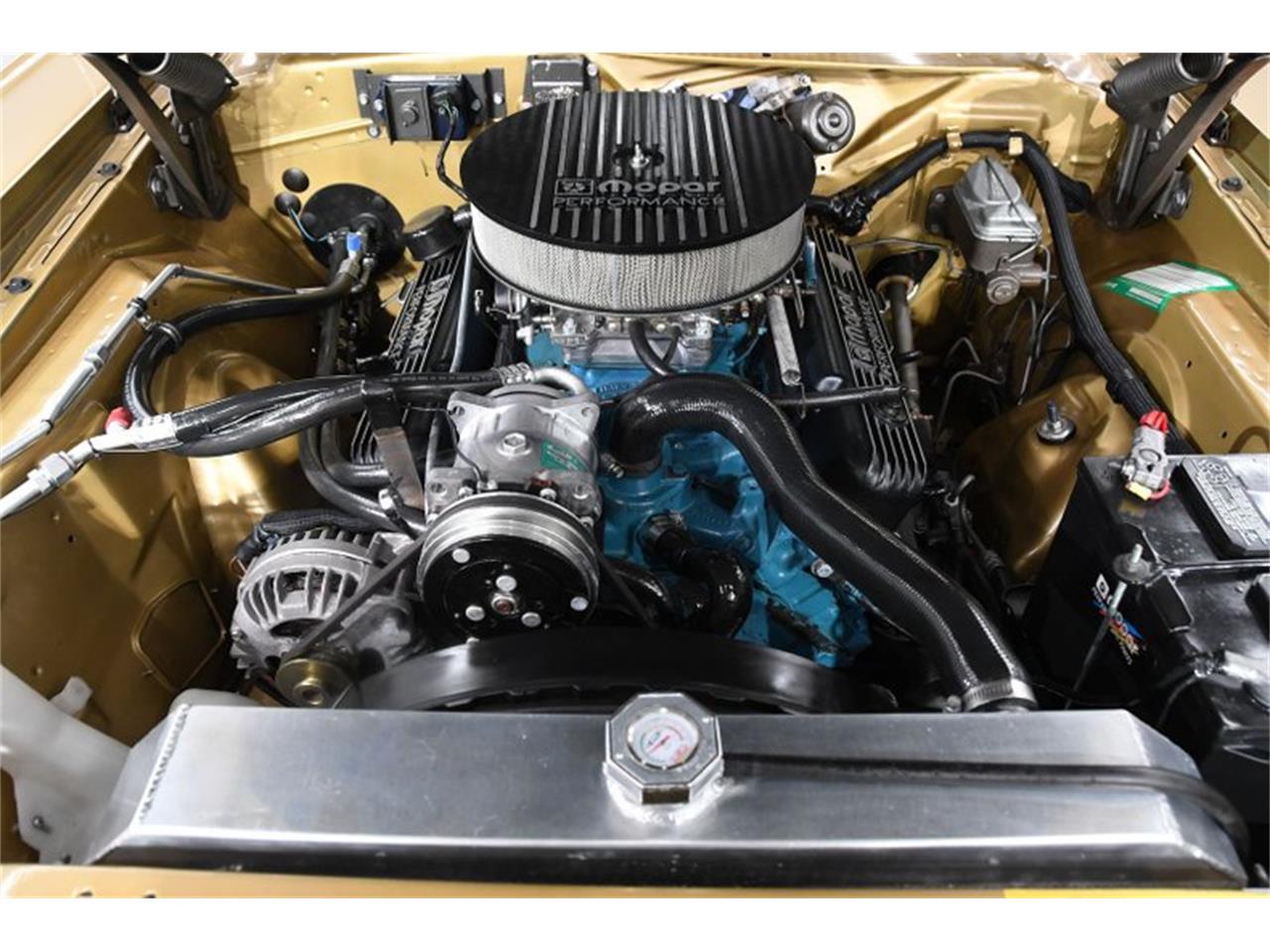Meticulous rotisserie restoration. The 340 was completely rebuilt, has Comp cam. The engine bay has nice metal all painted the body color. The original fender tag is attached. Most components look new or restored. The motor is dressed up with Mopar performance finned aluminum valve covers, air cleaner and plug wire holders. Has a new Vintage Air system. The car is kept cool with an aluminum radiator, new shroud and an overflow bottle. Bottom of the hood is painted nice, has hood insulation. Air conditioning Spoilers Racing mirrors Stripes R/T hood Pop up gas cap Magnum 500 wheels Bucket seats Console Stereo Tinted glass Build sheet