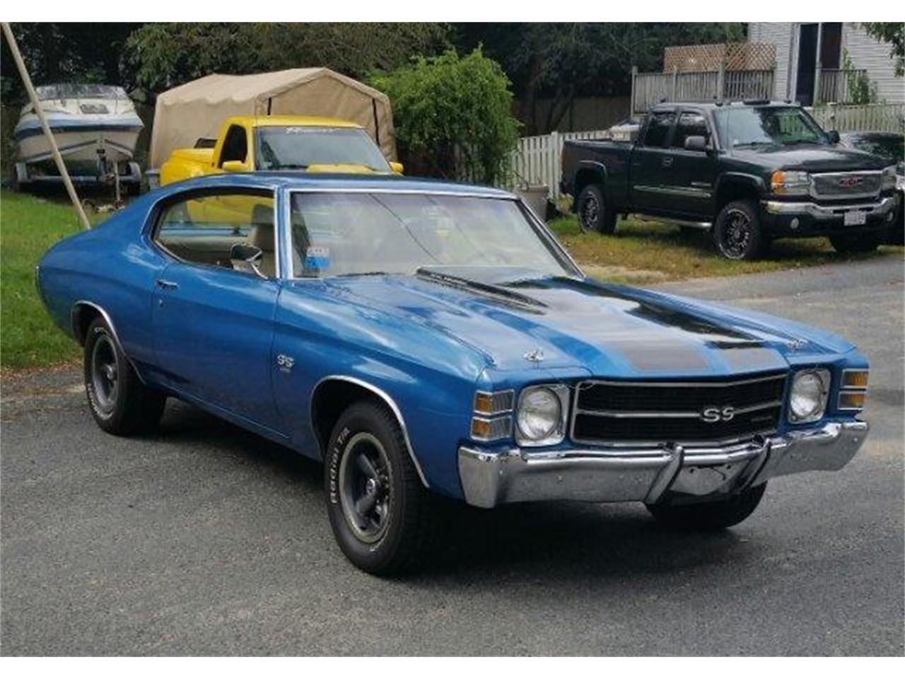 Beautiful 1971 Chevelle SS Malibu Sport Coupe. Matching numbers car with 402CI Big Block Engine and Turbo 3 speed automatic transmission. Engine has Thumper Flat Tapper Cam pumping out about 400 HP. 273 twelve bolt Pro Posi-traction, PS, PB, AC upgraded with R-34 and AM/FM Cassette stereo. 59K miles. 396 Badging. Mulsanne Blue with rare saddlewood and brown interior including carpet in excellent condition. Dual Exhaust with custom exhaust tips from Lou\'s Custm Exhaust. SS rally wheel. Solid car that is super fast and in very nice condition. Straight body and clean undercarriage. All gauges work as they should.