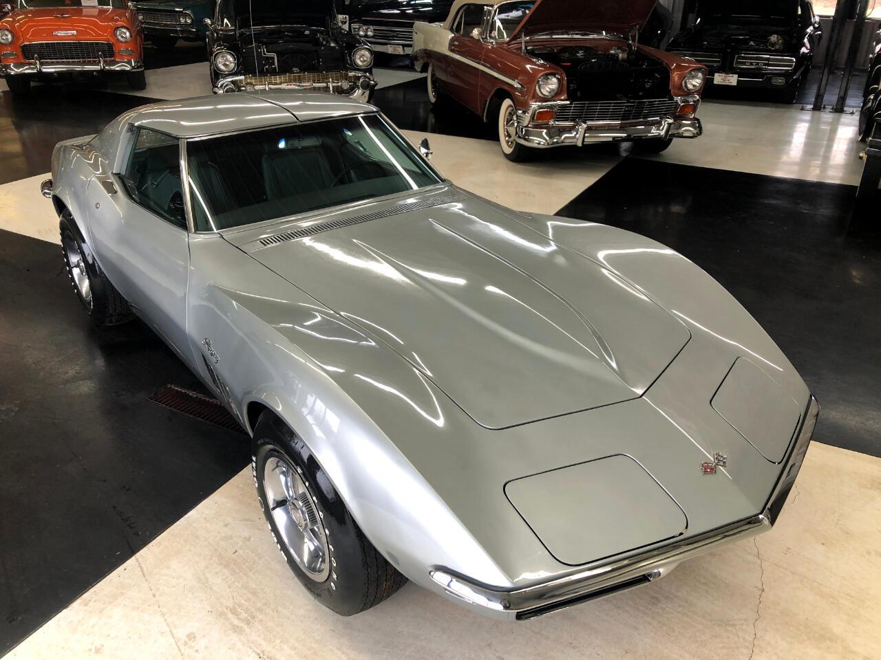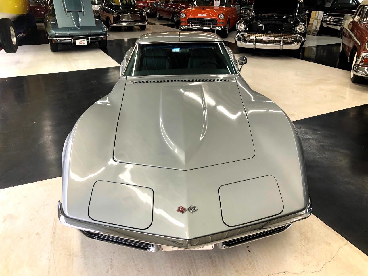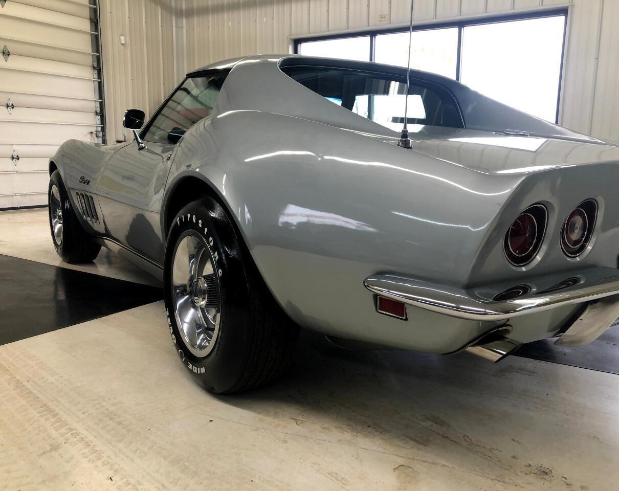 This is an original car that is still wearing its original Cortez Silver paint (only a few touch ups) with the rare Gun Metal Gray original interior original (numbers matching) engine transmission and rear end. Every aspect of this car drips of originality from the 350 / 350 engine and Muncie 4 speed to the interior glass and even the original factory spare tire.