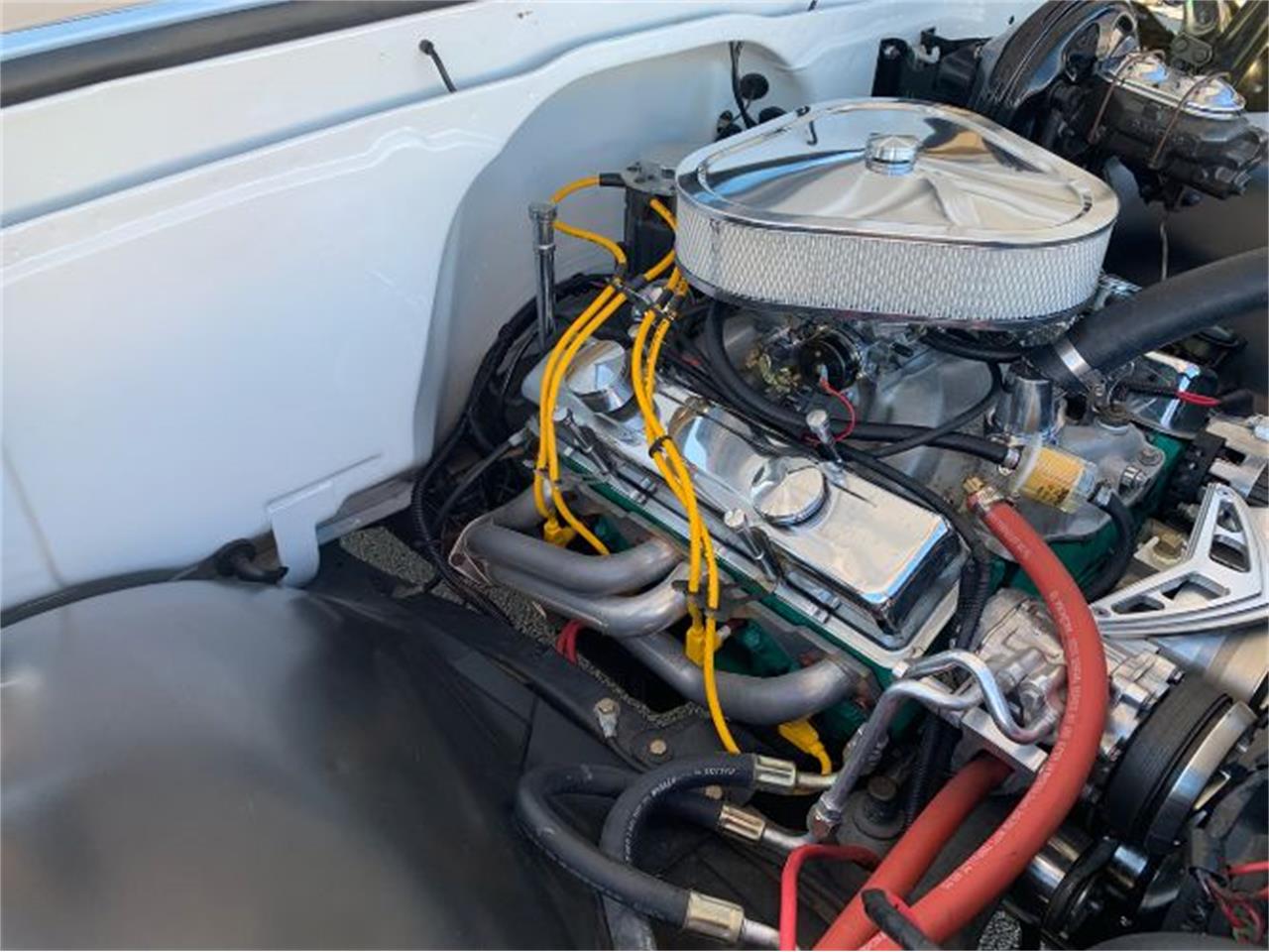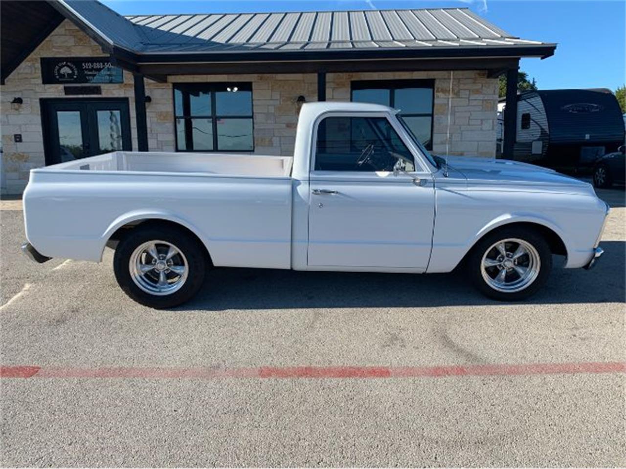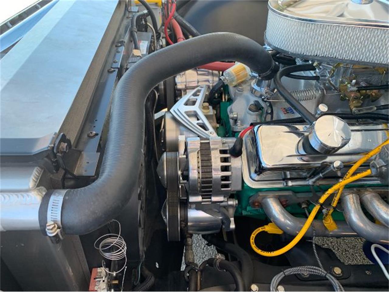 This 1969 GMC short bed pickup truck had a frame off restoration with a shaved gas filler cap, tailgate handle, and bed rails.