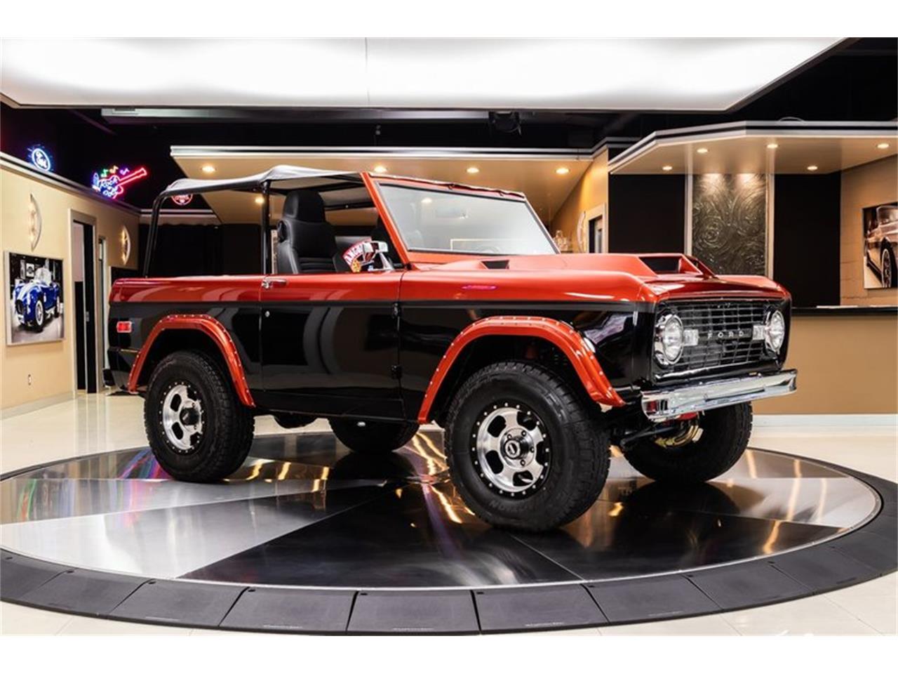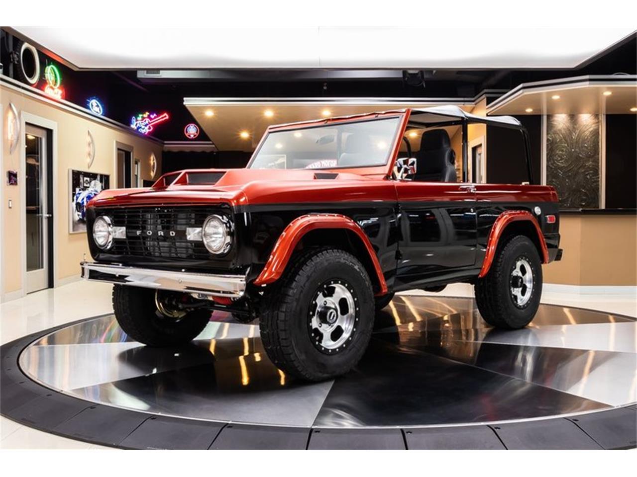Check out this beautiful 1970 Ford Bronco! This custom Bronco is sporting a glossy Black and Sunburst Orange Paint finish, Black Interior, Carbon Fiber Decal Stripe, Bikini Top, Custom Hood, American Racing Wheels, along with Polished Components all around that's sure to turn heads wherever you go! This Bronco has undergone a complete Nut and Bolt Restoration and it looks amazing throughout! Under the hood sits a Ford 302ci V8 Engine mated to a Ford 3.