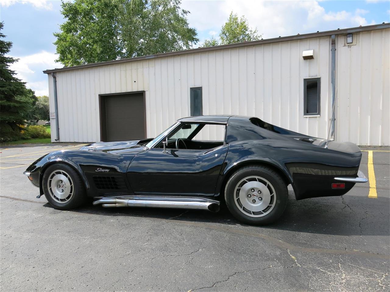 Numbers-matching 1971 big block Corvette. 454ci 365hp big-block engine with an assembly date of August 8 and the correct CPJ suffix code. The matching factory VIN stamp is readily visible as well. The transmission is the original TH400 automatic operated by a Cheetah SCS shifter with working neutral safety and backup light functions. Power steering and power brakes are also present. All gauges work as do the courtesy lights, headlights, wipers, horn, turn signals, and parking brake.