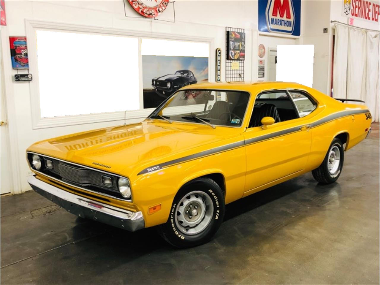 1971 PLYMOUTH DUSTER - (340 tribute) PERIOD CORRECT 340 ENGINE - ('72 date).030 OVER BOREHOLLEY 750 CARBALUMINUM INTAKERACER BROWN CAM 5.20 LIFT/2.86 DURTTI HEADERS AND DUAL FLOWMASTER EXHAUSTELECTRIC EXHAUST CUT OUTSA833 4 SPEED MANUAL TRANSNEW DUAL FRICTION CLUTCHHURST SHIFTERVERY CLEAN BODY, FLOORS, AND TRUNKOLDER BAHAMA YELLOW PAINT, BUT STILL IN VERY GOOD CONDITIONFACTORY BUCKET SEATSAFTERMARKET TACH AND GAUGES8 3/4 SURE GRIP REAR W/3.55MANUAL STEERINGMANUAL BRAKESNICELY DETAILED ENGINE BAYODOMETER READS 48,114 MILES.