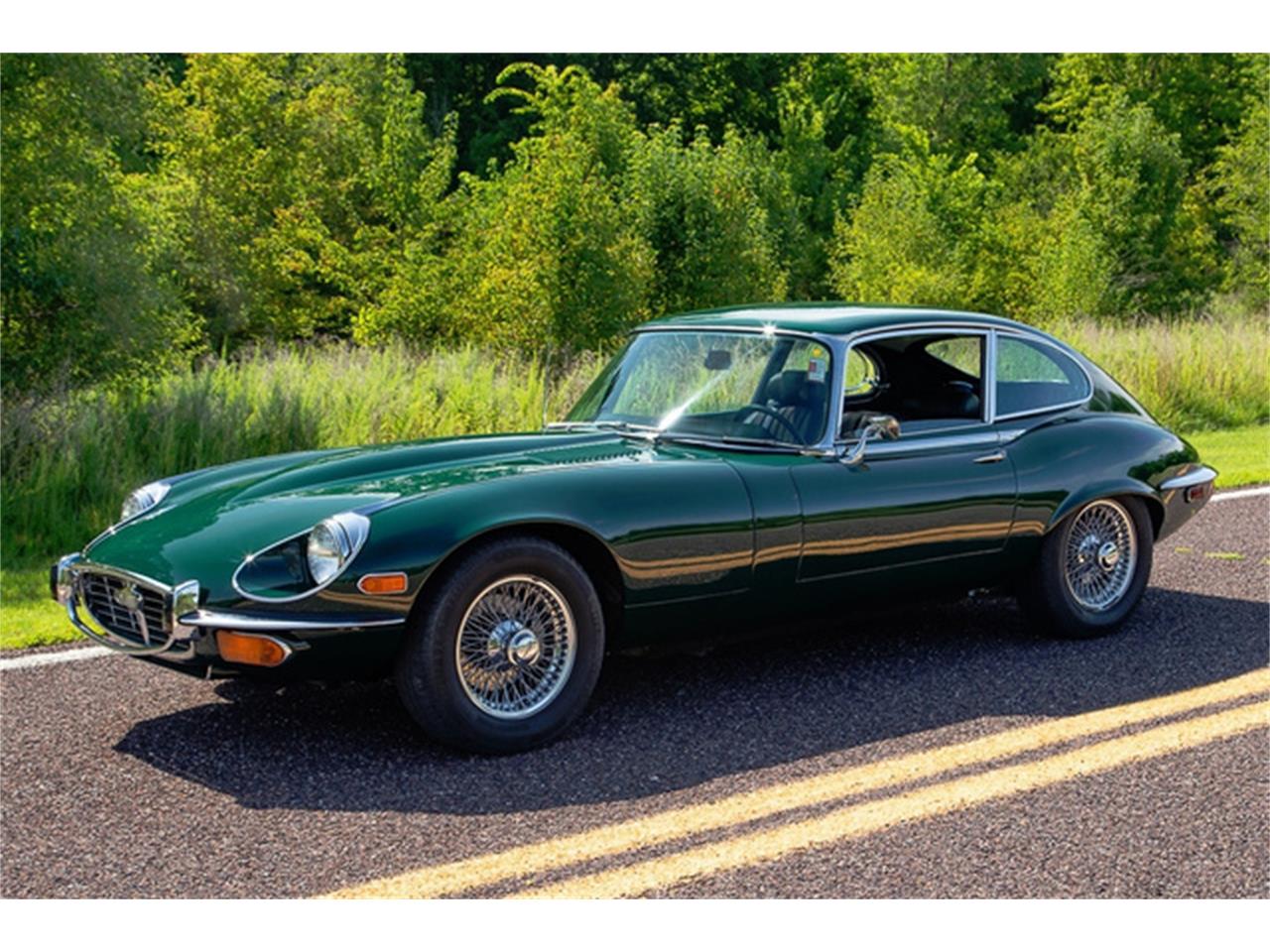 1971 Jaguar E-Type Coupe Series III 2+2 V12 4-speed. 44,588 actual original miles. Correct British Racing Green (code 8461) exterior. Black Connolly leather interior and Wilton wool carpets. Power steering, vented brake rotors and factory air conditioning that blows cold Factory wire wheels.