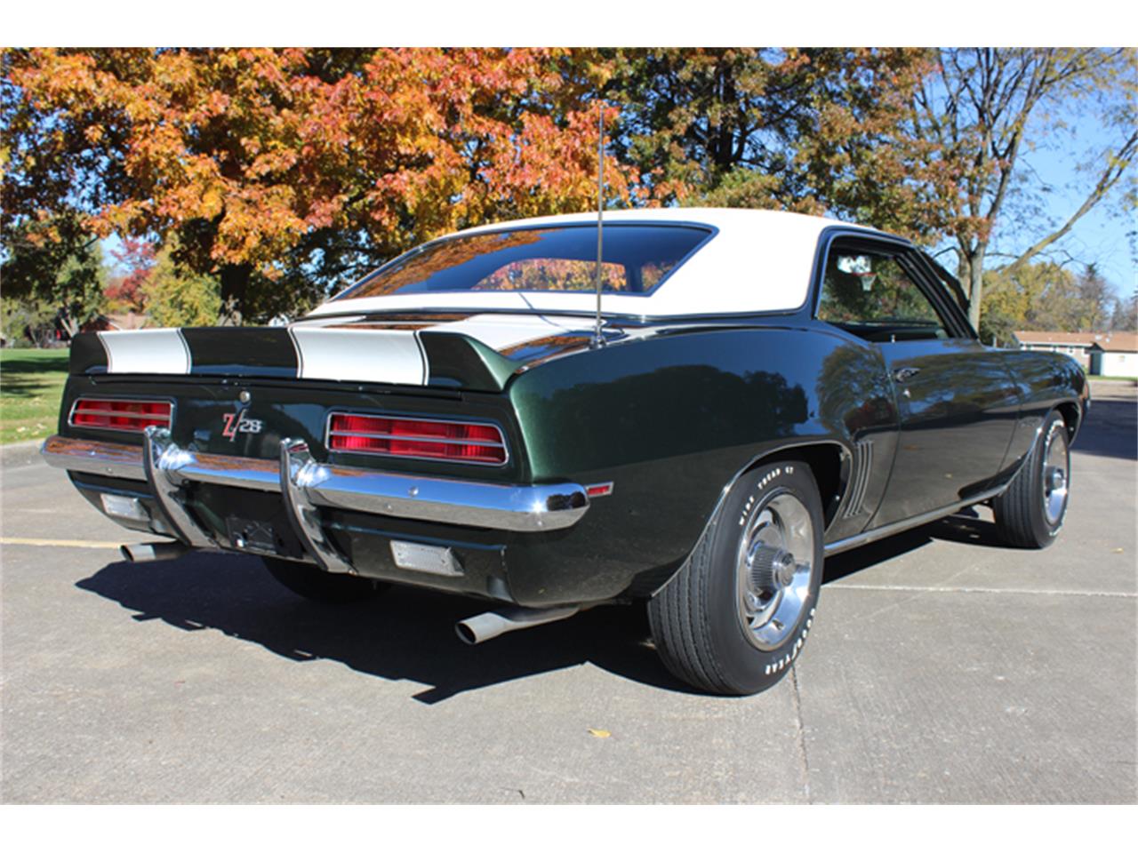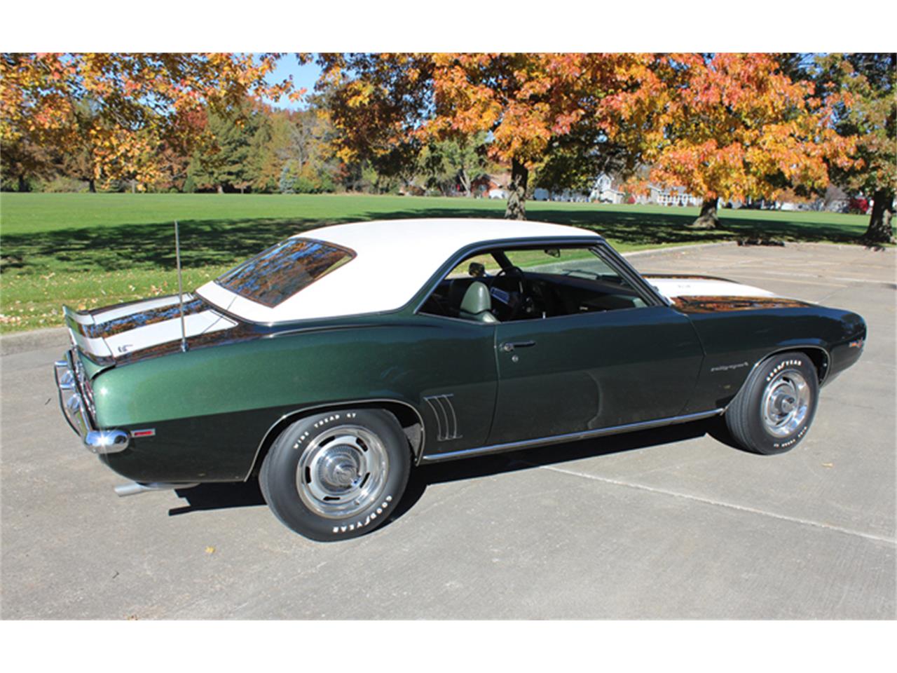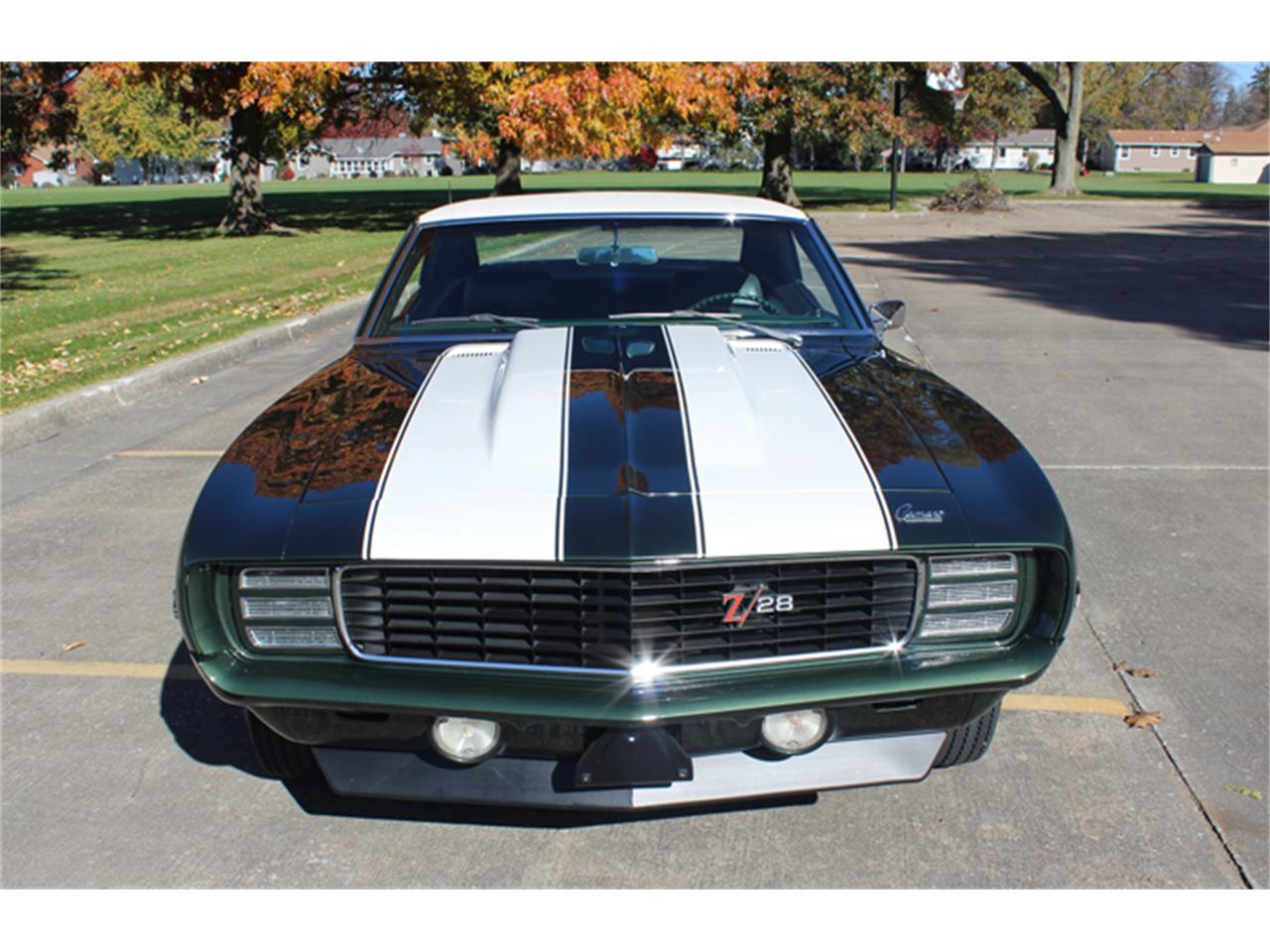 1969 Camaro Z28 RS. Fathom Green with rare Parchment vinyl top, Green standard interior. Real deal Z28 with factory Rally Sport.