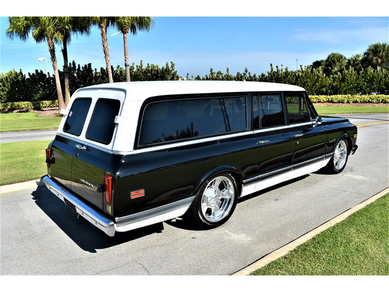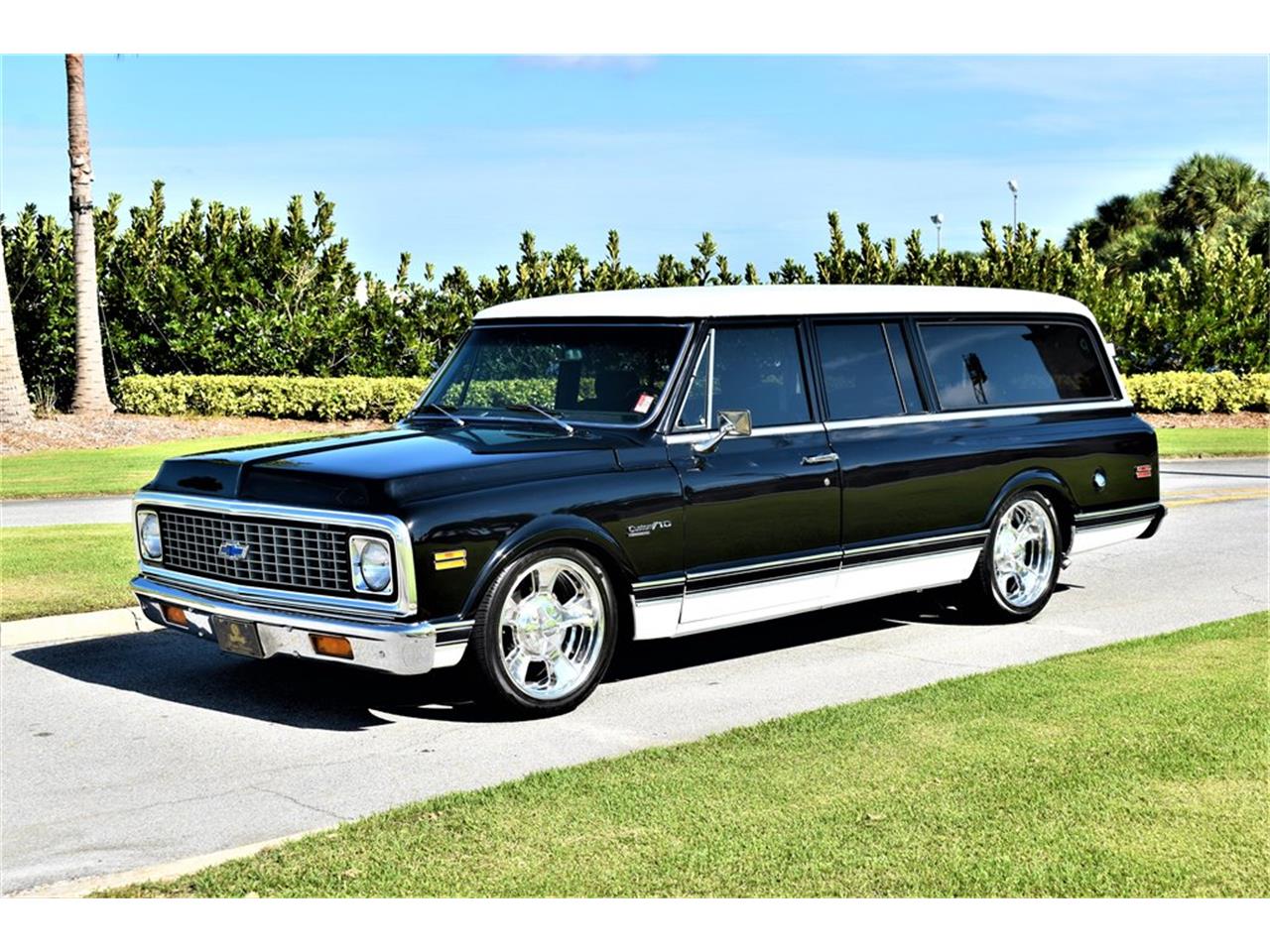 Simply Amazing 1971 Chevrolet Suburban C10 Deluxe: Powered by 327ci / 350hp V-8 Engine, Paired with a Manual Transmission, Acrylic Black Enamel Paint, New Dash Panel, Amazing wheels tires, Dunlop GT Tires, Rochester Carburetor, Air Conditioning, Aftermarket CD Player, ACC Loop Pile Carpet. Sounds Great and Drives Even Better!