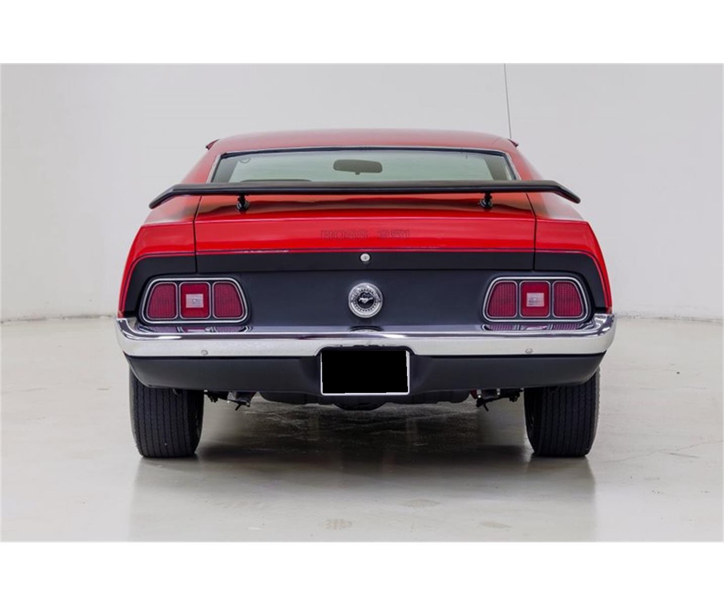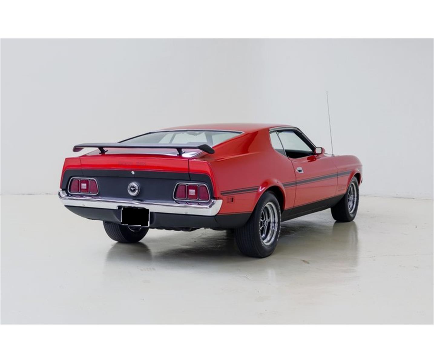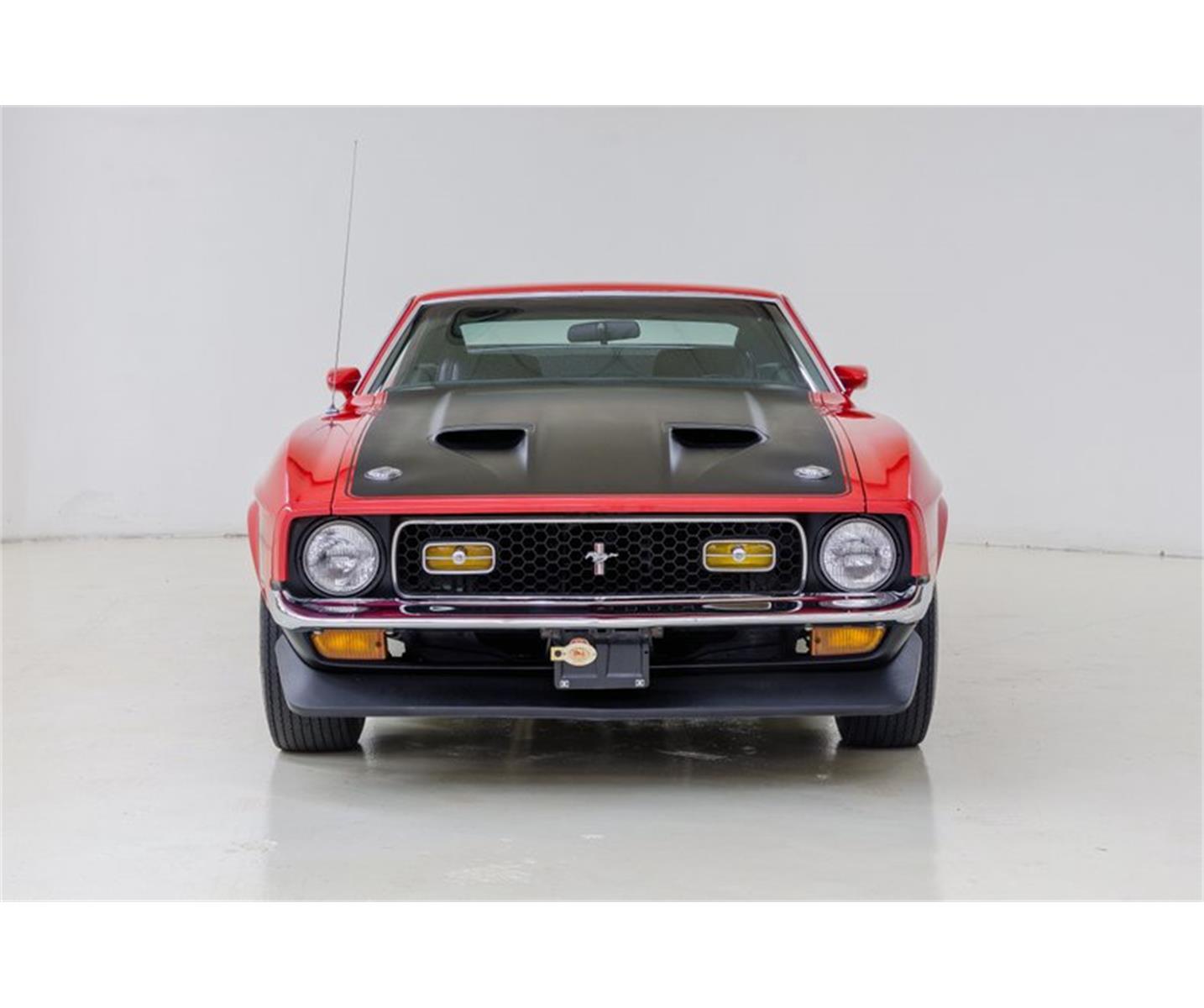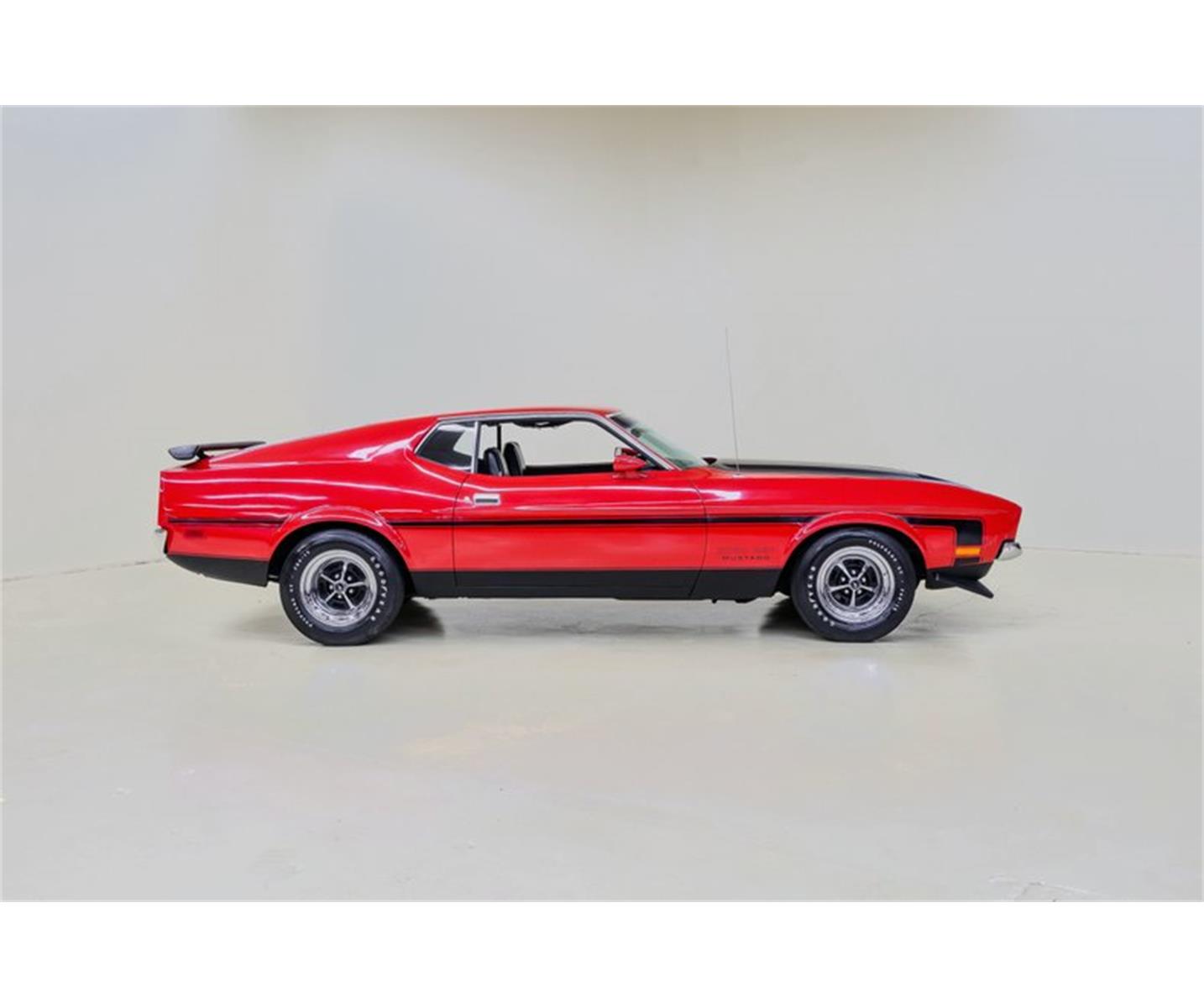 This '71 Boss 351 is one of the nicest you will find. A beautiful two-stage Red finish is in excellent condition and is accented with Matte Black hood, stripping and spoiler. The black vinyl interior is original except for the seats and is also in very good condition.Equipped with AM radio, factory tachometer/gauge package, Hurst shifter, power steering, upgraded suspension components and power disc/drum brakes. The Boss engine is the R-Code 351 Cleveland - a rare powerplant, truly under-rated at 330bhp. Cooling is provided by an HD radiator and flex fan. The wide ratio 4-speed feeds a Traction-Lok differential with 3.91:1 gears. Factory Magnum 500 wheels mount F60-15" Goodyear Polyglas GT bias tires in good condition.