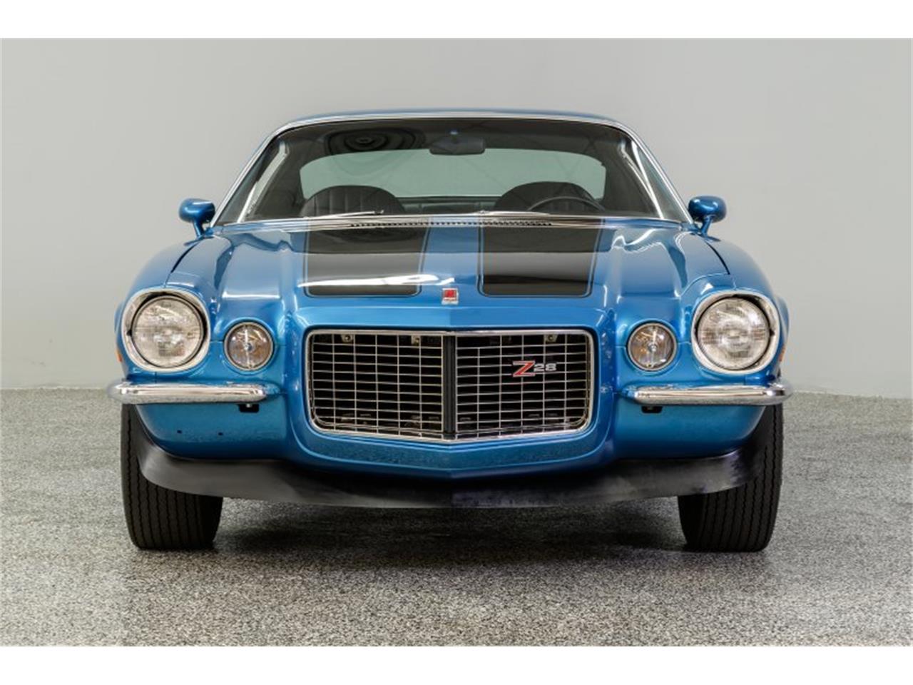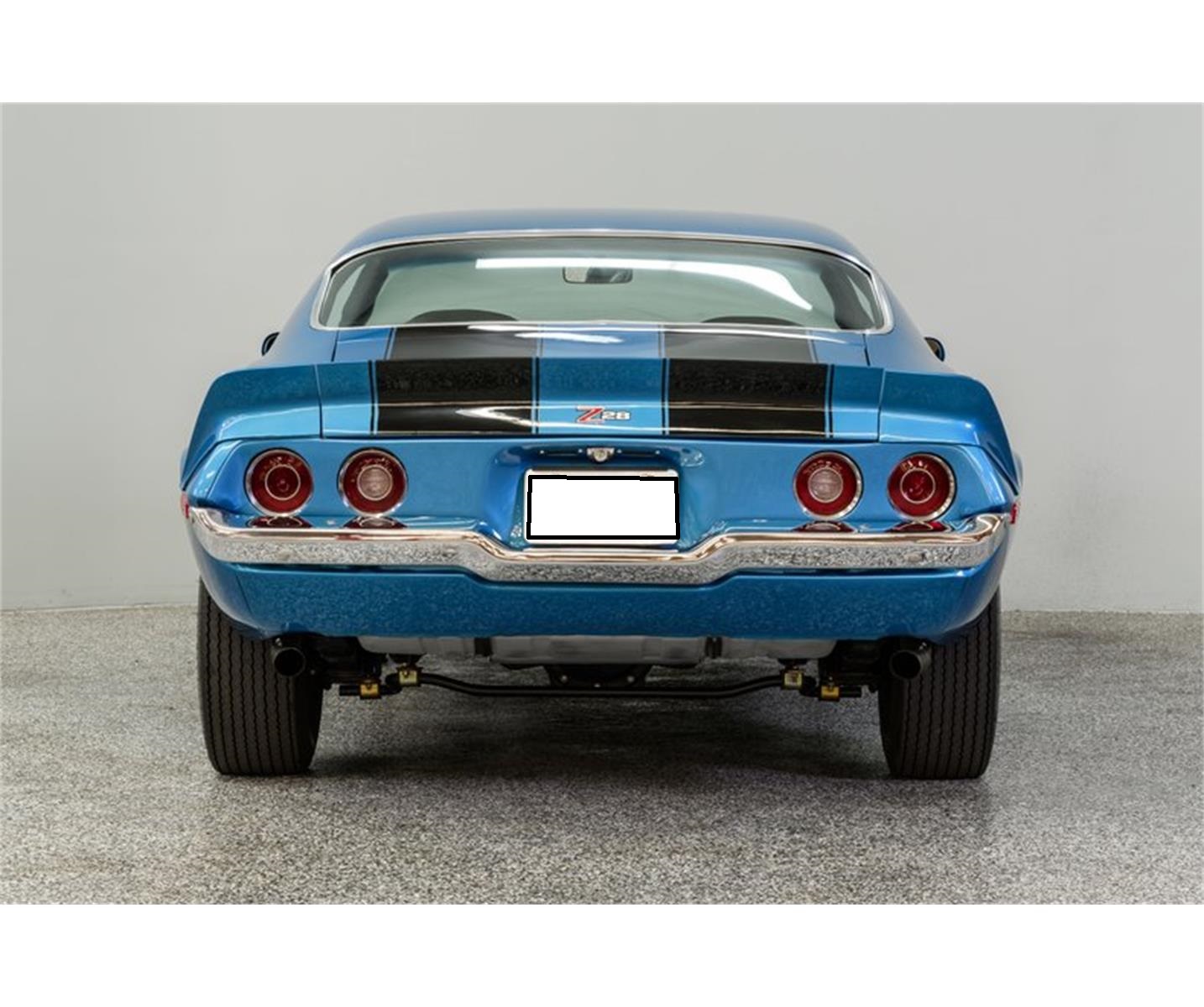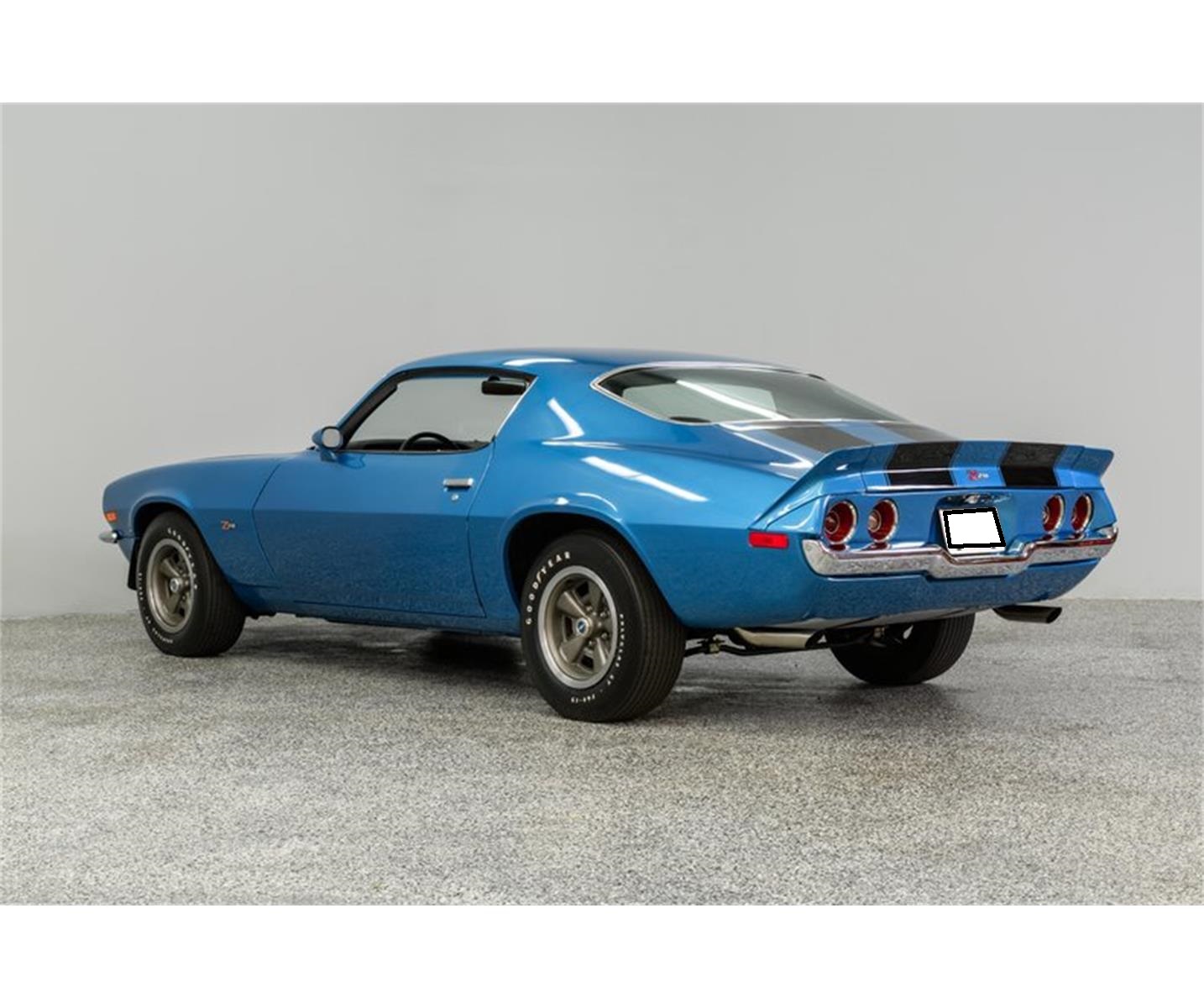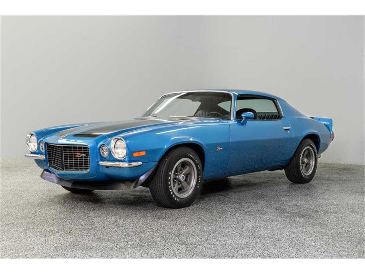 Mulsanne Blue (original color) is accented with Z-28 stripes/badges, distinctive RS front grill features, split bumpers, front air dam, rear deck spoiler and factory Z-28 wheels. Black vinyl interior is the correct code (775) for the Camaro and is fitted with center console, tinted windows, factory gauge package, tilt wheel and an AM/FM/cassette stereo. Horsepower is provided by a 350ci LT-1/330bhp small-block built by H&F Performance. The block casting number is correct.Torque is delivered via a 4-speed Muncie manual transmission w/Hurst Competition+ shifter to a posi-tractionf differential with 3.73:1 gearing.The coupe has a great stance on Z-28 wheels with Goodyear Polyglass F60x15" bias ply tires. This sharp Camaro is a head turner and a fun driving experience.