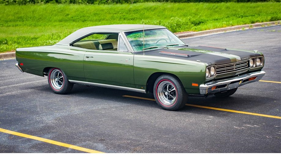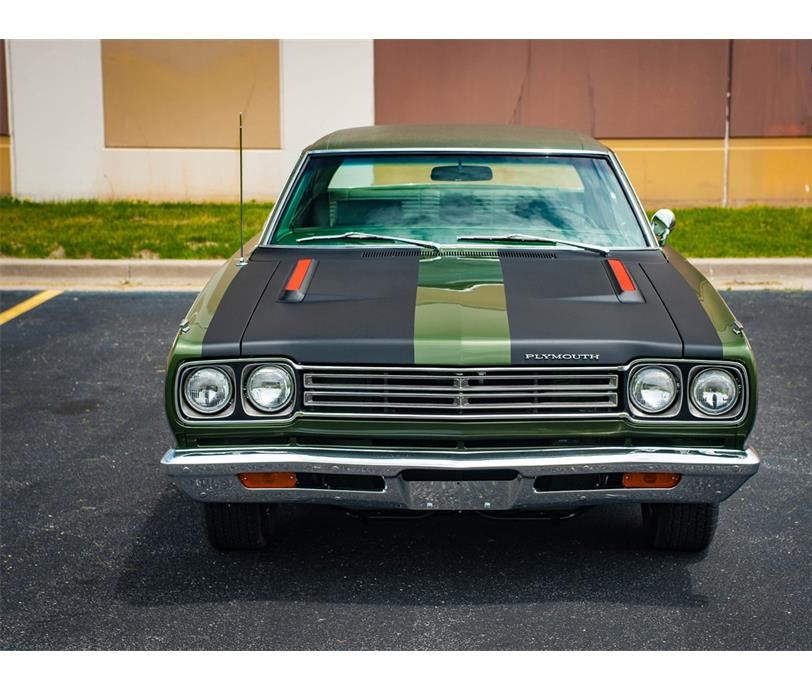 1969 Plymouth Road Runner.This 69 Road Runner is ready to get out on the open road and stretch its legs.The luscious green leather seats pair perfectly with green dash and carpet and add a great mood to the inside of the car.
