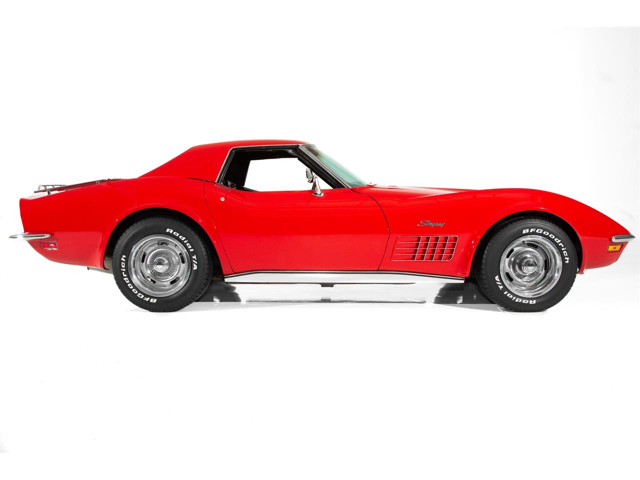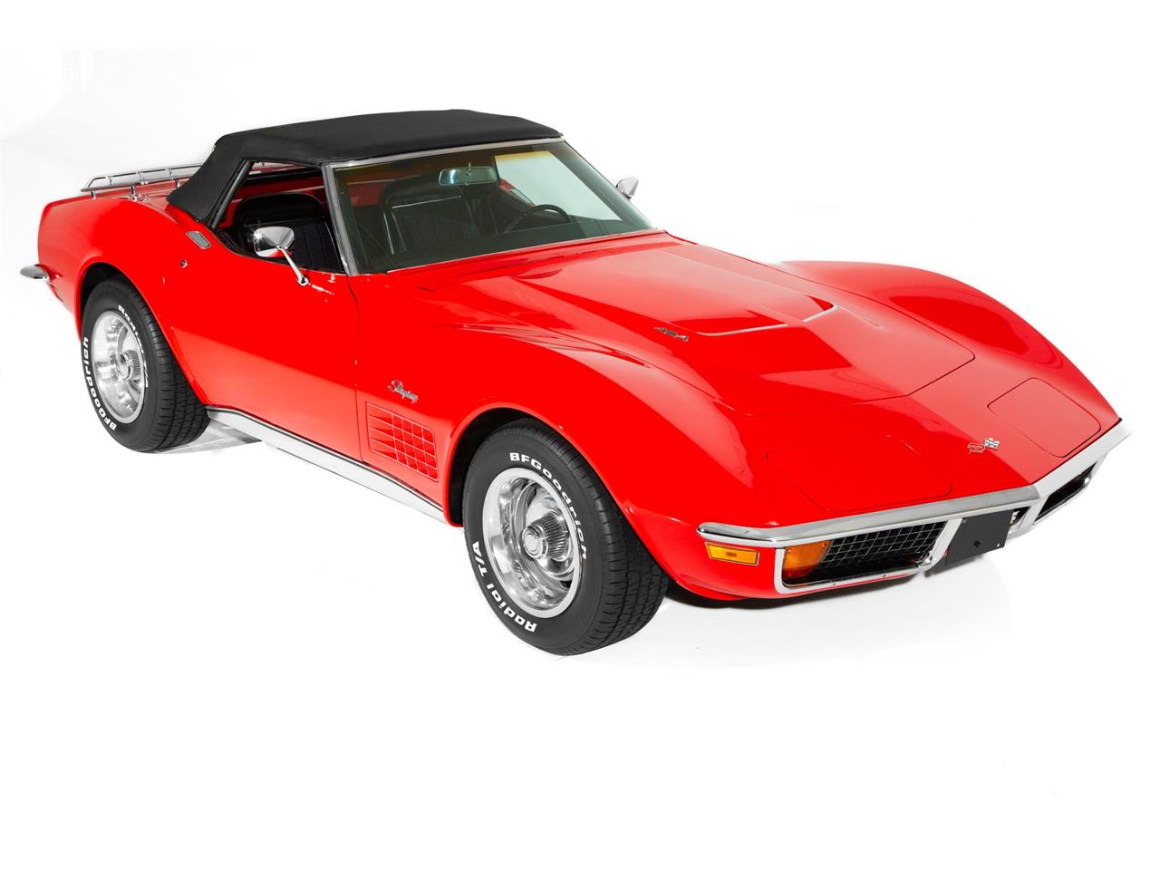 1972 Corvette Stingray 2 top roadster with the numbers matching LS5 454 engine. Very desirable. The black interior is in great shape .