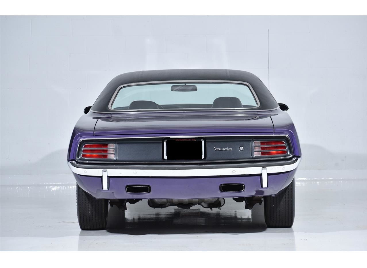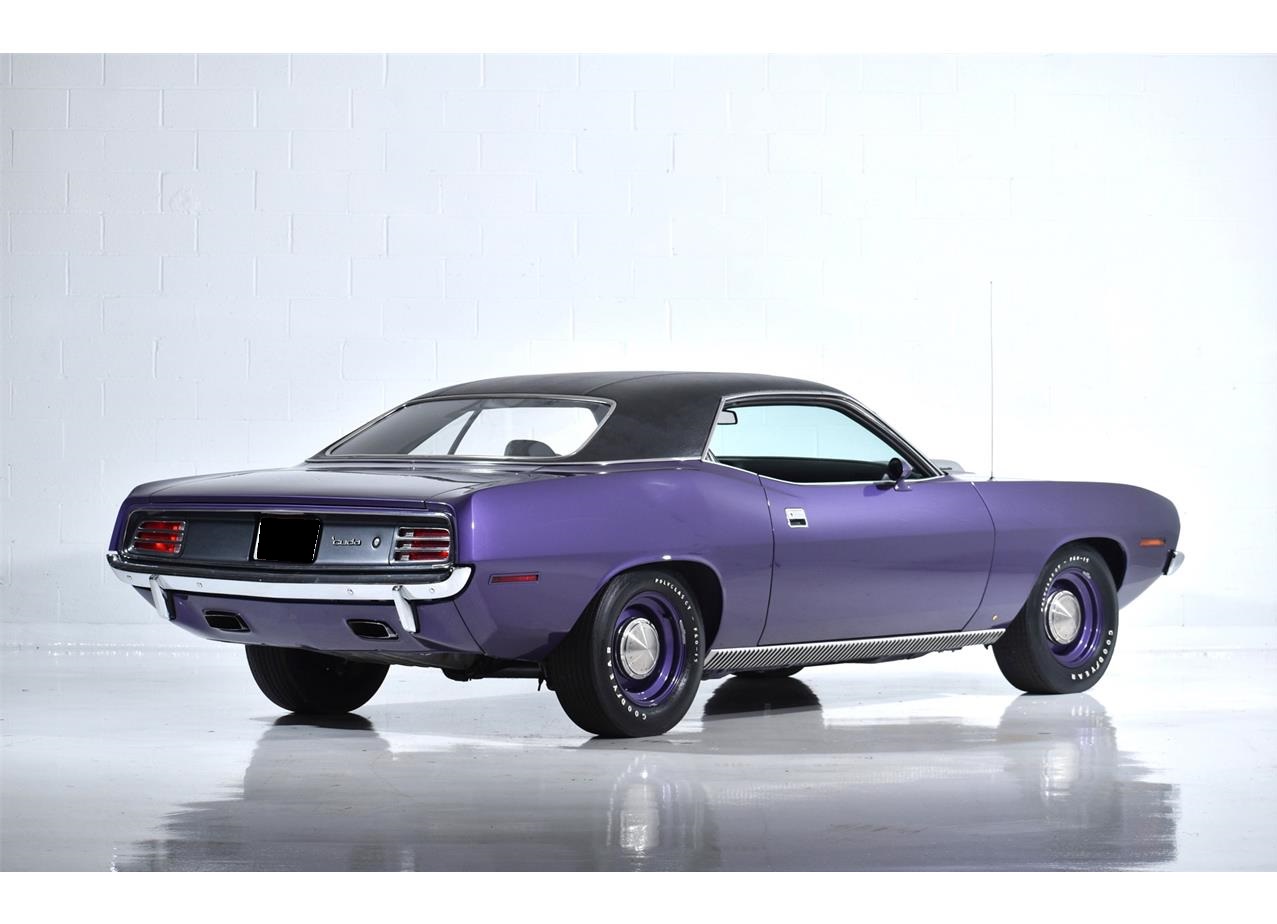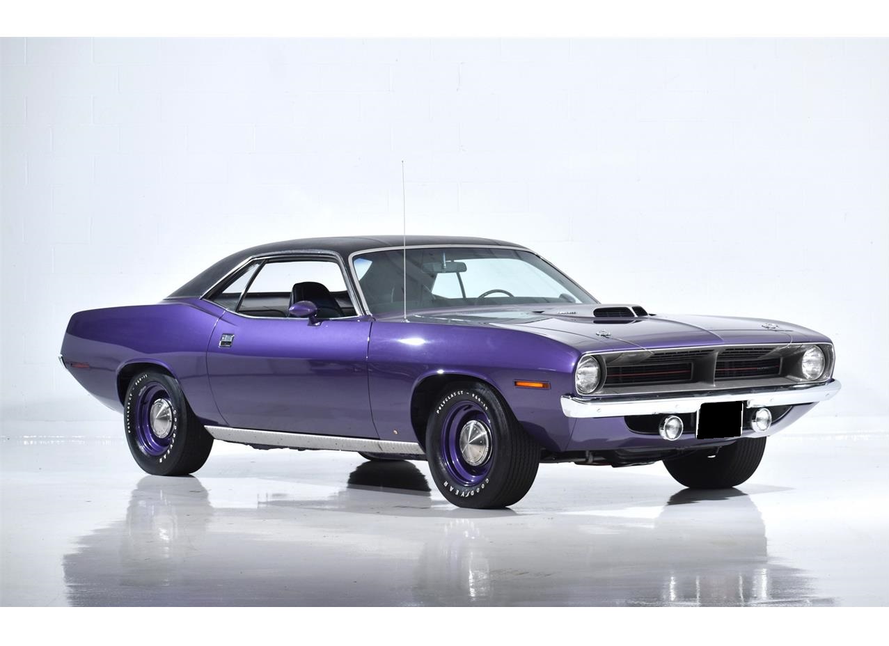 1970 Plymouth Hemi Cuda in Plum Crazy with a Black interior. It has been only driven 13,751 miles since new. The car features dual exhaust, Shaker hood, Wide sill moldings, Belt moldings, perfect original Vinyl roof, Power brakes, Bucket Seats, Hood Pins, AM Radio and more! Original interior, underbody, and carpets. The original broadcast sheets are included. The 426 CI Hemi with dual 4 barrel carburetors in a truly iconic engine. It has the Chrysler 727 automatic gearbox. It is a superb example.