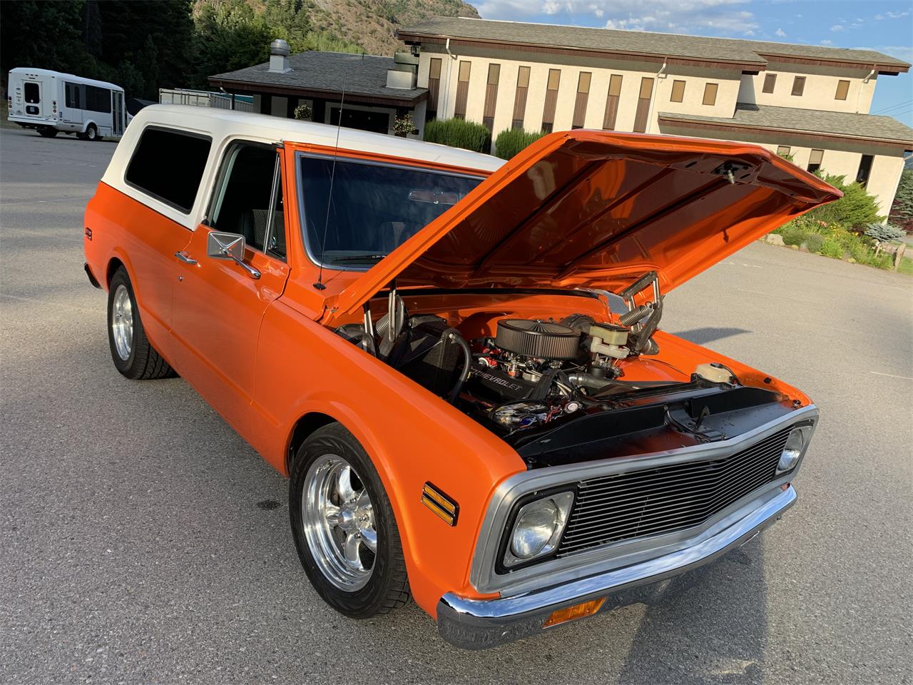 This is the lucky ticket that will get you that experience. 1972 Chevy CST blazer ,This is turn key ready to drive It has been through the complete restoration process from top to bottom. s one off color Lamborghini orange is extremely eye catching in and out of the sun as it accents all the lines of the Body. It has its matching white pearl fiberglass top that pops against the orange paint. There are 17 inch chrome polished Cragar wheels that gives it a mean look and stance. It rides excellent due the fox racing shocks and airbag suspension in the back. This blazer is not all looks as it is a equipped with a GM performance motor backed by a brand new Turbo 400 automatic transmission Turning the powerful rear end is a set of 4 11 gears. The interior is immaculate as it features a two tone black and charcoal interior which contrasts well against the powerful outside color.