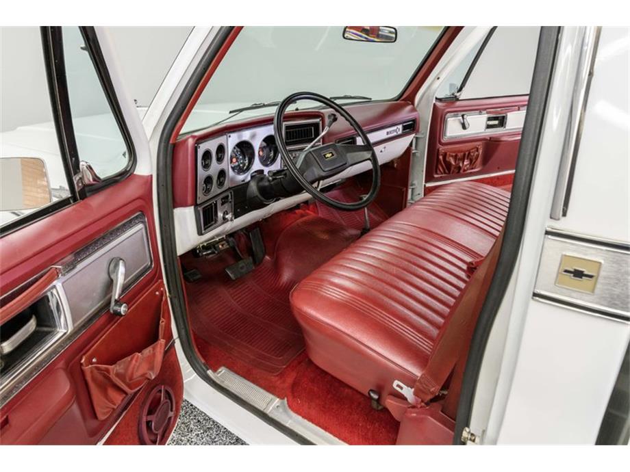 This 1978 Chevy C10 is a rare Silverado. The Frost White is in very good condition. The original red vinyl interior of this Silverado is in very good condition.