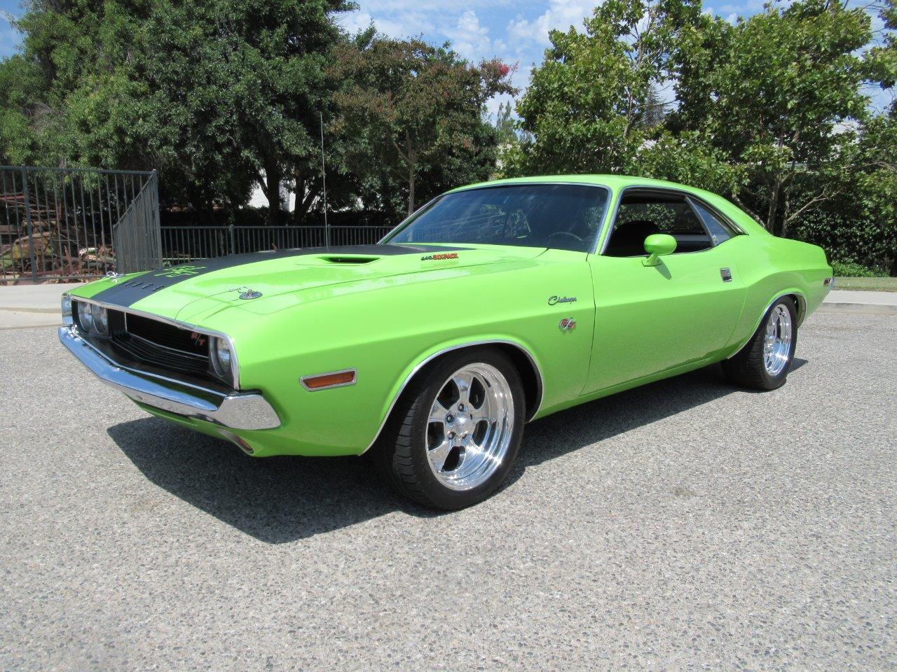 Sublime Green Machine!. Check out this R T Six Pack tribute car with a healthy 440 Big Block V8 backed by a 4 Speed manual transmission with a Pistol Grip shifter, Freeway gears with Posi Traction differential, power disc brakes, power steering, Black vinyl bucket seats with center console, polished 17 inch Hopster American Racing wheels, Coated Headers with dual exhaust and quad chrome tips. It may not be the real thing but it looks and drives like it.