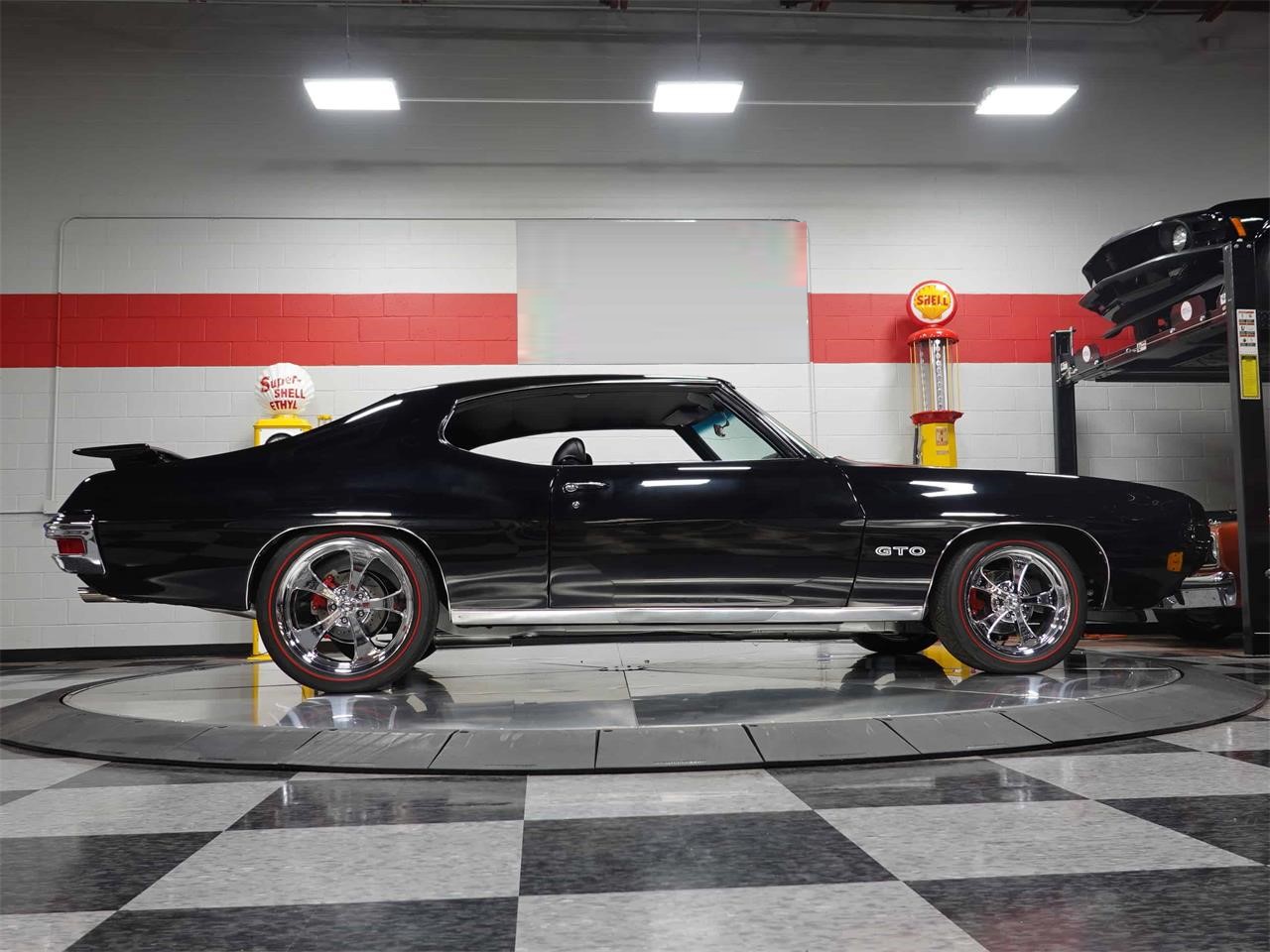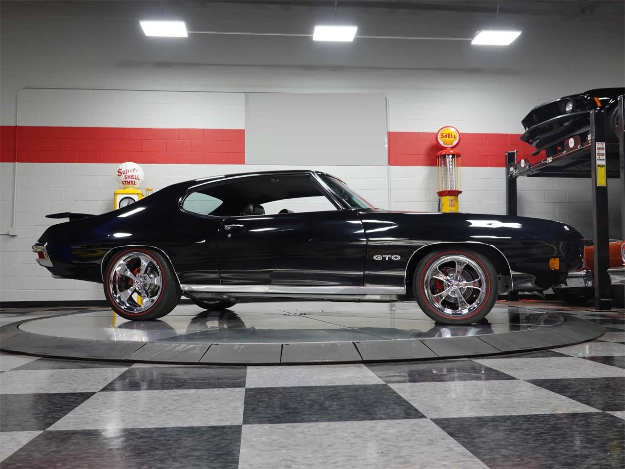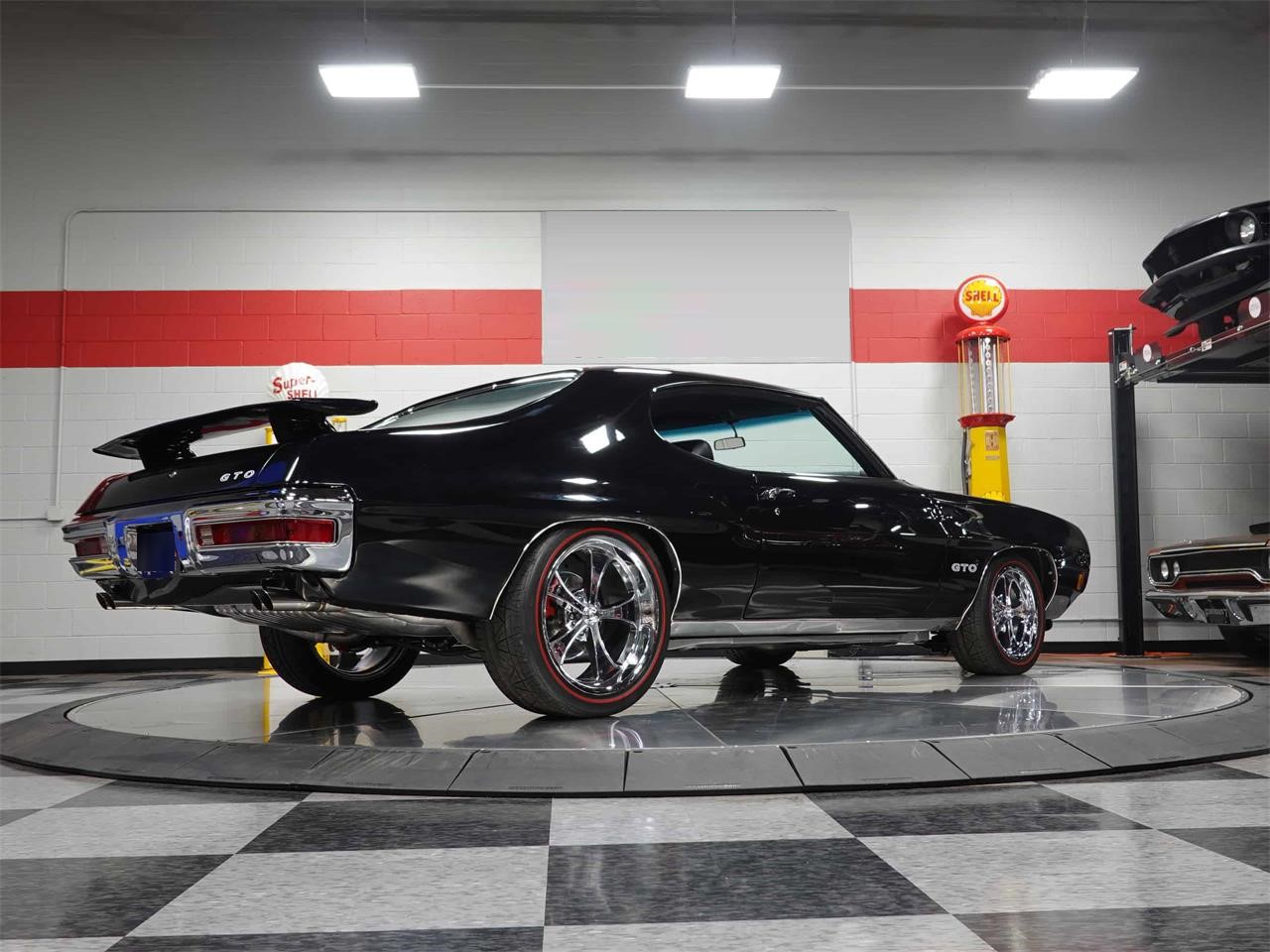 Documented by Pontiac Historic Services, this authentic 242 VIN GTO is a fresh, ground up restoration by the top pros at Tony s Muscle Cars in Sugarloaf, PA. At first, you re drawn to the flawless Gloss Black Two Stage paint, then you ll notice the ultra high quality fit and finish. The doors actually open and close better than new.