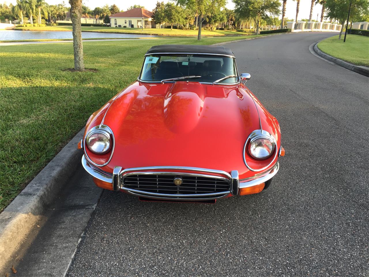 XKE Series II Convertible with factory hard top. There has never been any rust in this vehicle and there have been no rust repairs. This is a prestine unrestored original with matching numbers. The factory hard top is included. Original color cream, repainted to Carmen red. New interior kit and convertible top installed two years ago. Full air conditioning installed but not set up. Full federal emissions installed accept smog pump .