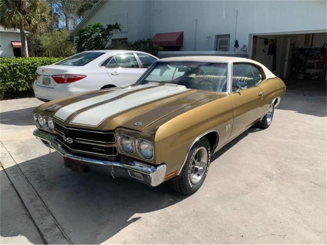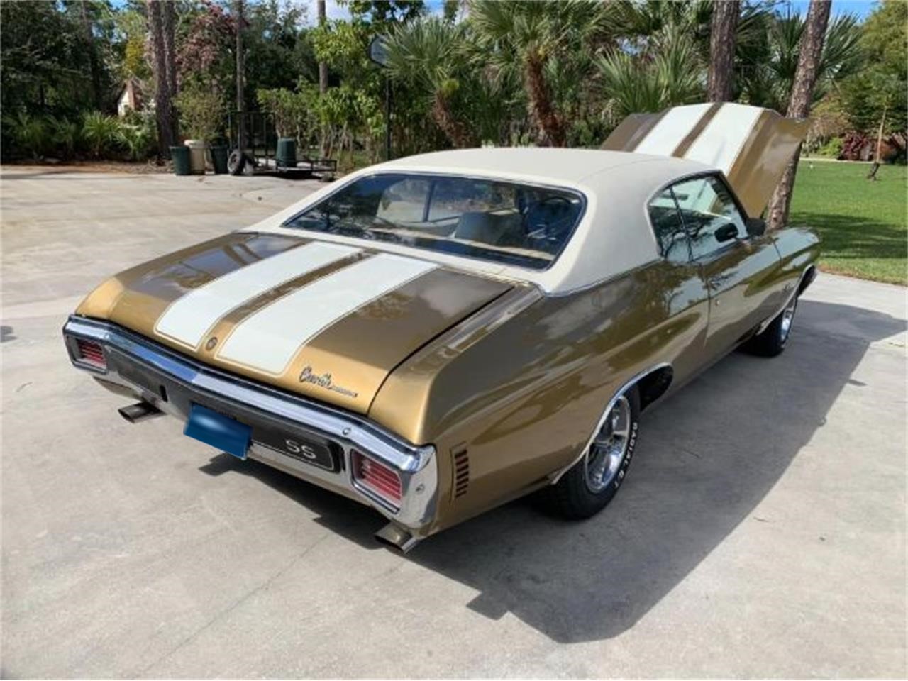 1970 Chevrolet Chevelle SS LS5 454 360 HP, Turbo 400 Automatic Transmission with Matching , 50,795 Doumented Original Miles, 2 Original Build Sheets, Tach and Gauges, Functional Cowl Induction Hood, 12 Bolt Posi Traction Rear End with 331 Gears, Rare Original Colors with Color Code 58 Autumn Gold Paint, Correct White Stripes White Vinyl Top and Ivory Interior. Original Sheet Metal unrestored with 1 repaint and rust free original floors and trunk pan.