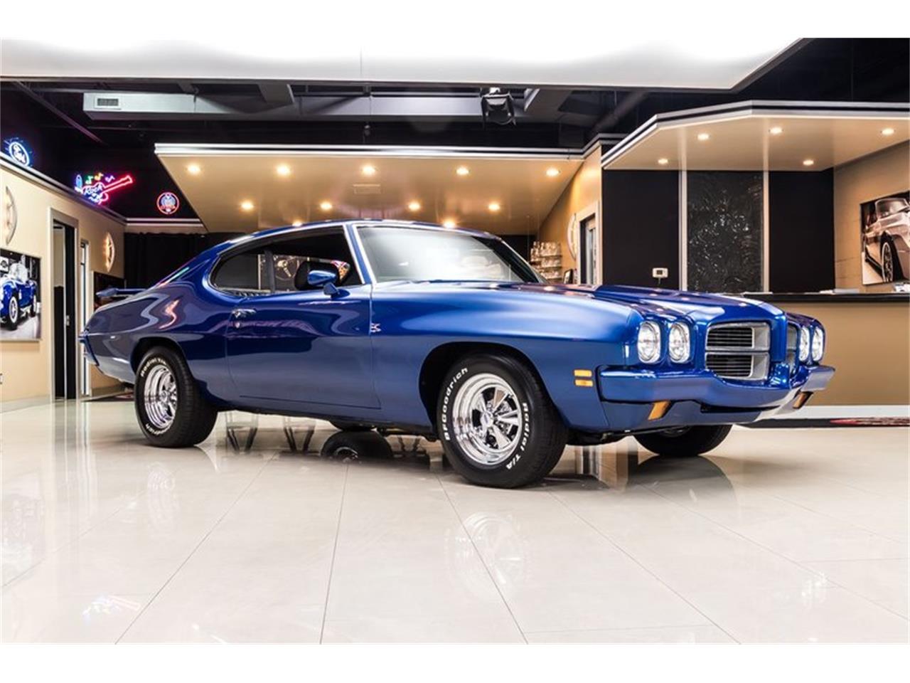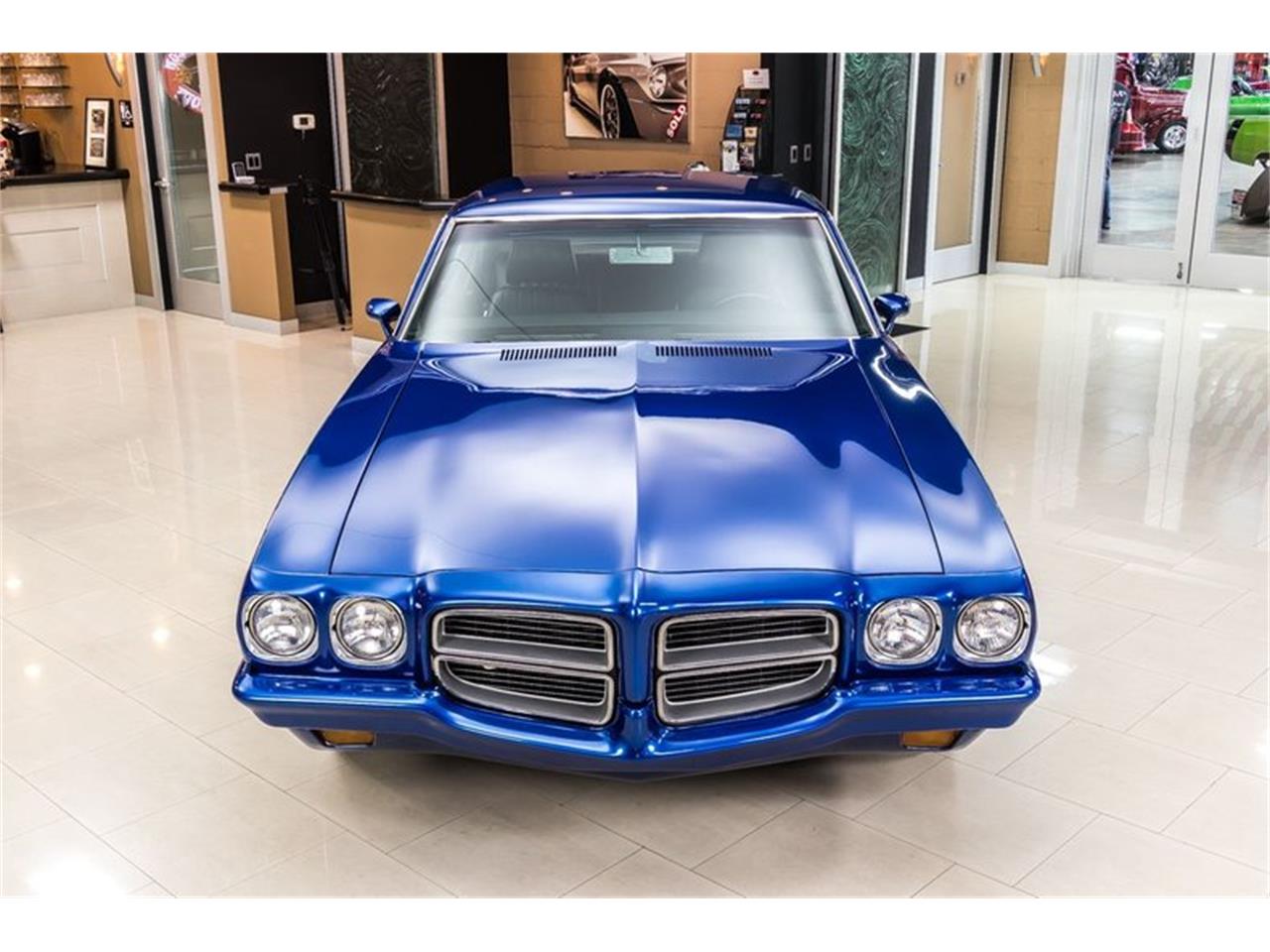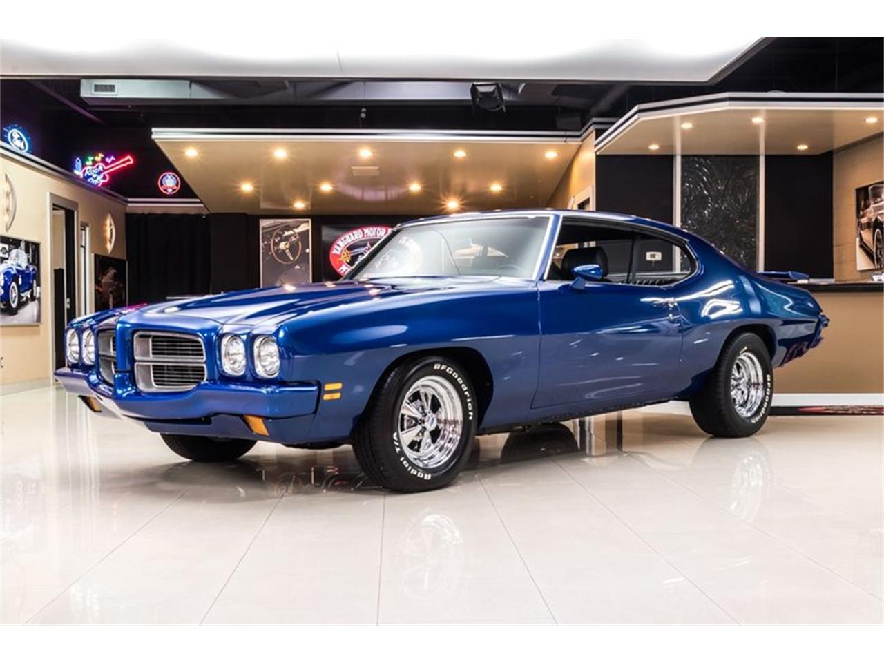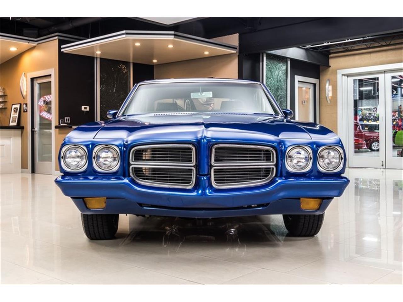 1972 Pontiac Lemans Metallic Blue Paint finish, Black Interior, Body Color Bumpers, and Chrome Cragar Wheels. 489ci Stroker V8 Engine mated to a TCI street fighter TH400 automatic transmission with a 3000 stall converter. This '72 LeMans has over 650HP. Edelbrock Performer RPM Top End including Cylinder Heads, Full Roller Valvetrain, Pro Systems Modified Holley 4 Barrel Carburetor, Jet Coated Headers, MSD Pro Billet Distributor, MSD Wires, March Billet Pulley Setup, Comp Valve Covers, Moroso Oil Pan, Polished Aluminum Alternator, Polished Aluminum Water Pump, along with a Chrome Power Steering Reservoir! Power is sent to the BFGoodrich Radial T/A Tires through a GM 12 Bolt Rear End with Posi. This Lemans is an absolute blast to drive and there's plenty of power on tap as well! Drive this Pontiac around town or to your local car show with ease thanks to the equipped Power Steering and Power Disc Brakes on all 4 corners.
