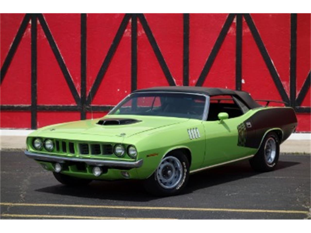 1971 plymouth barracuda convertible hemi cuda tribute period correct 426 hemi engine recent 4 speed manual trans conversion rebuilt trans w new clutch assembly show quality sub lime green paint excellent body and floors rotisserie restored dual quad intake and carbs correct shaker hood and air cleaner assembly fresh black interior factory .