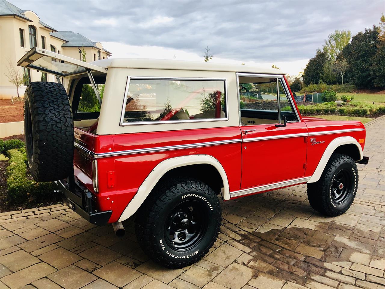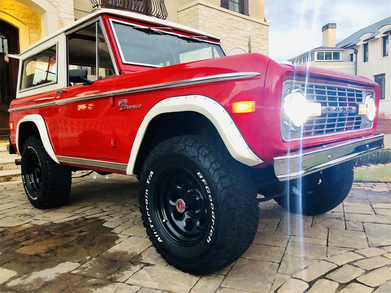 1977 Restored Ford Bronco w 5.0L 302 fuel injected V 8 with automatic transmission. 39 77 was the last and best year for the Bronco with all the upgrades and kinks worked out. This Bronco is rust free inside and out, has a super clean engine bay, body, and under carraige. Has power steering, power disc brakes, new Vintage Air AC system, bluetooth stereo system, new chrome front bumper, custom rear bumper w LED fog lights and tire carrier, new LED headlights, 5 brand new 17 matte black wheels on 5 BF Goodrich K02 All Terrain Tires, new white upholstery w high back seats with headrests, new matching fold and tumble rear seat, new wooden steering wheel, locking center console w matching upholstered cushion, full carpet, 3 point shoulder belts.