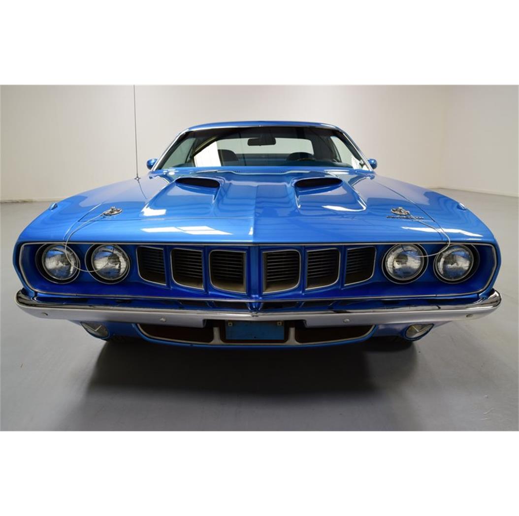 This particular 1971 Cuda is not only special as it was originally equipped with a 383 and an automatic transmission, which makes it one of 1/168 produced as such in 1971, but it also features a very unique set of options including factory A/C and a bench seat. Here's a complete breakdown of the fender tag: BS23: Plymouth Barracuda Special, 'Cuda 2 Door Hardtop N1B: 383 300HP 1-4BBL 8 CYL 1971 Dodge Main, Hamtramck, MI, USA 204599: Sequence number E65: 383 cid 4 barrel V8 300hp D32: Heavy Duty Automatic Transmission GB5: Bright Blue Poly Exterior Color H4B5: Trim - High, Vinyl Split Bench Seat, Blue 000: Full Door Panels B06: Build Date: November 06 018085: Order number GB5: Bright Blue Poly Top Color U: USA Specifications A01: Light Package G11: Tinted Glass (all) G36: OS Dual Racing Mirrors H51: Air Conditioning with Heater J45: Hood Tie Down Pins J54: Sport Hood L25: Trunk Lamp L31: Hood/Fender Mounted Turn Signals M21: Roof drip rail moldings M25: Wide sill moldings M31: Belt Moldings M88: Decklid Moldings Treatment N41: Dual Exhaust N42: Chrome Exhaust Tips R35: AM/FM Stereo Radio (10 Watts) V5X: Body Side Stripes, Black 26: 26in Radiator