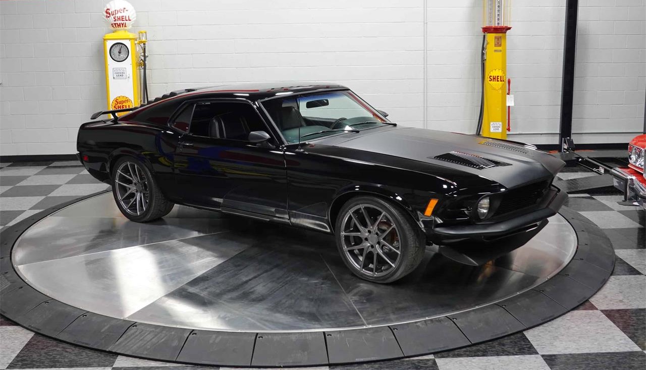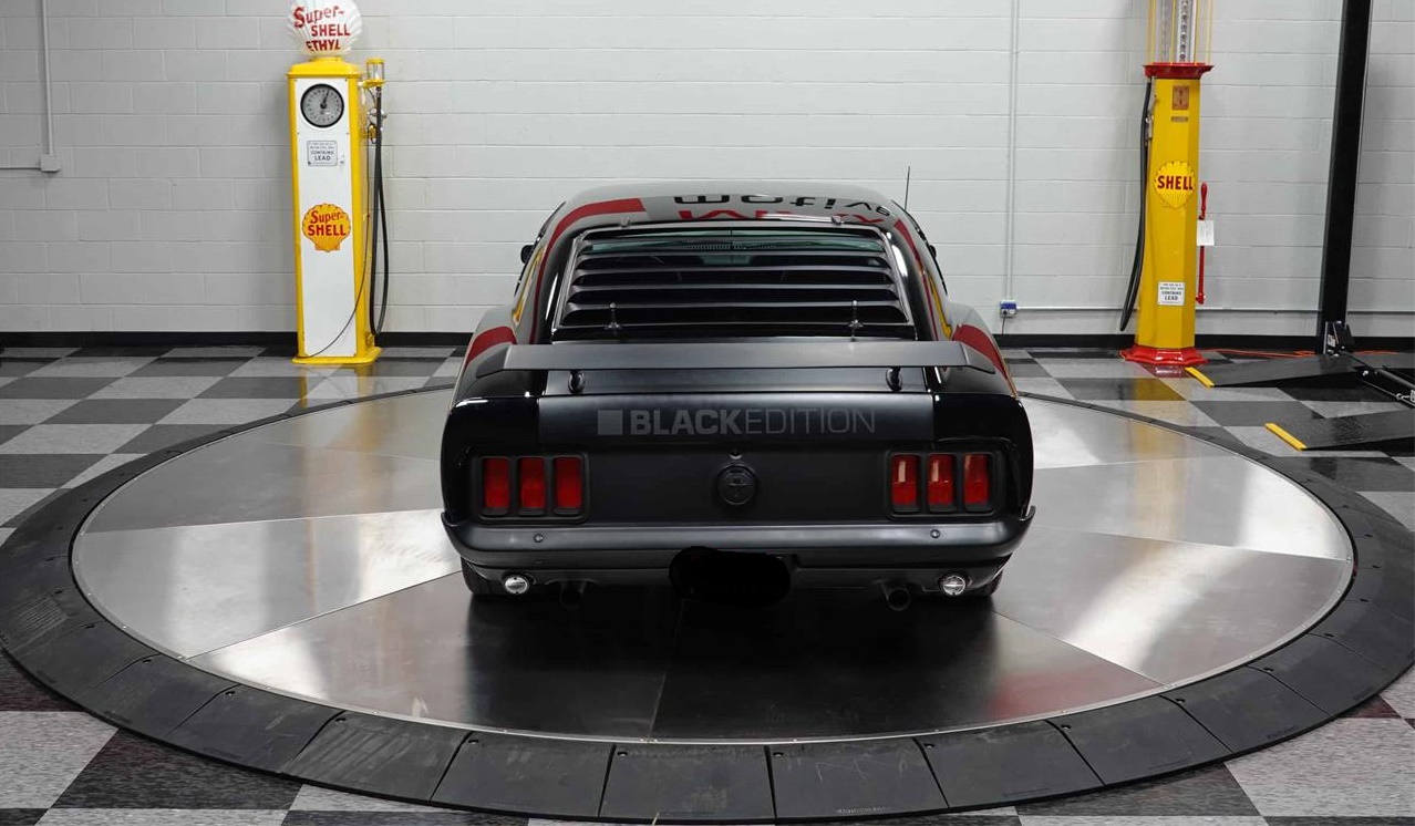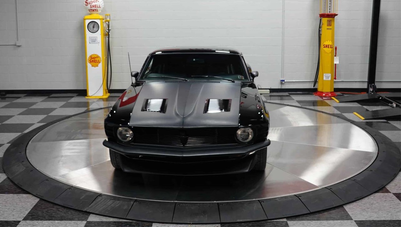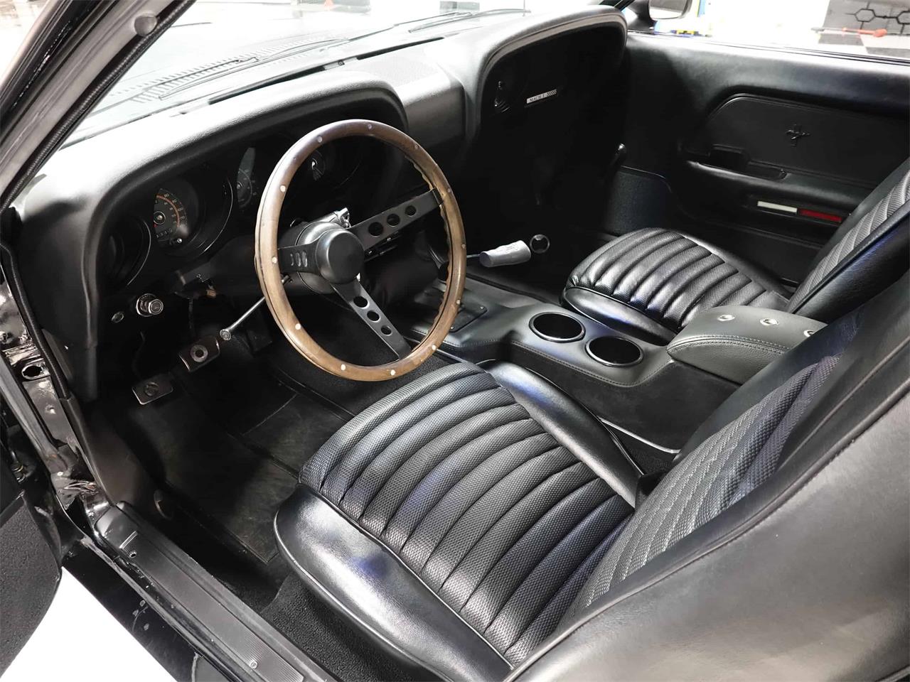 This is the Black Edition, a black on black, murdered out 1970 Mach 1 with 477 cubic inches of Ford power and a Hurst shifted 4 speed. The interior has been given the full blackout treatment save for a comfortable woodgrain steering wheel.This car presents all the qualities that make a Mach 1 such a highly sought after classic.
