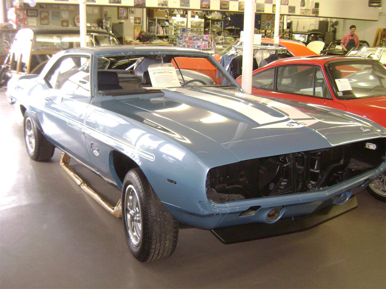 Camaro 12 bolt rear end. Corvette Front disk brakes and much more. 1969 427 factory bore engine installed. Rebuilt heads, and other work done. This terrific Yenko 427 recreation is being restored by a top flight restoration professional to a high standard. Super quality body and paint work, including removal of sub frame, big block springs, radiator core and fuel line conversion. Recent interior restoration includes new carpeting repainted and detailed dash, and other interior restoration. Original blue interior is in overall very good original condition.