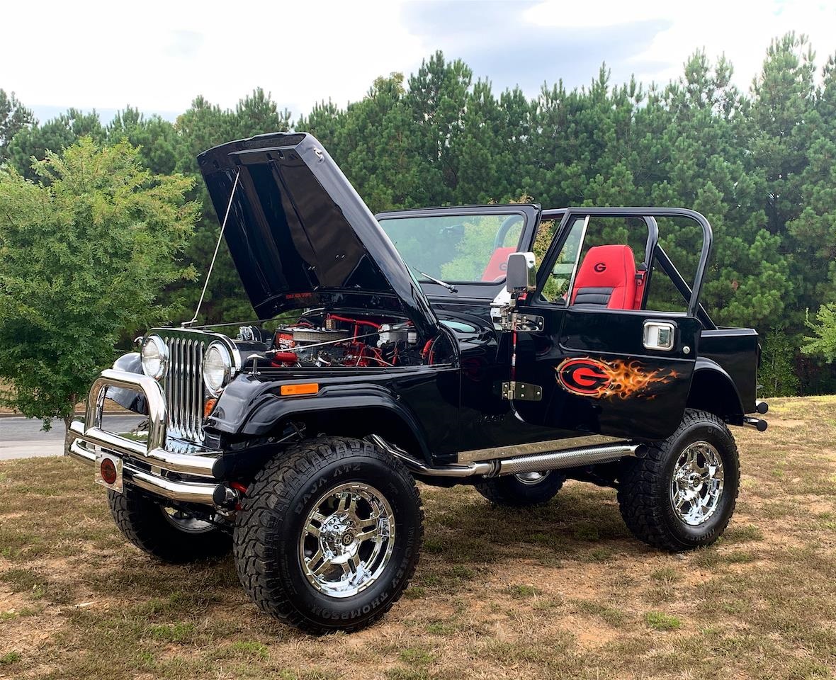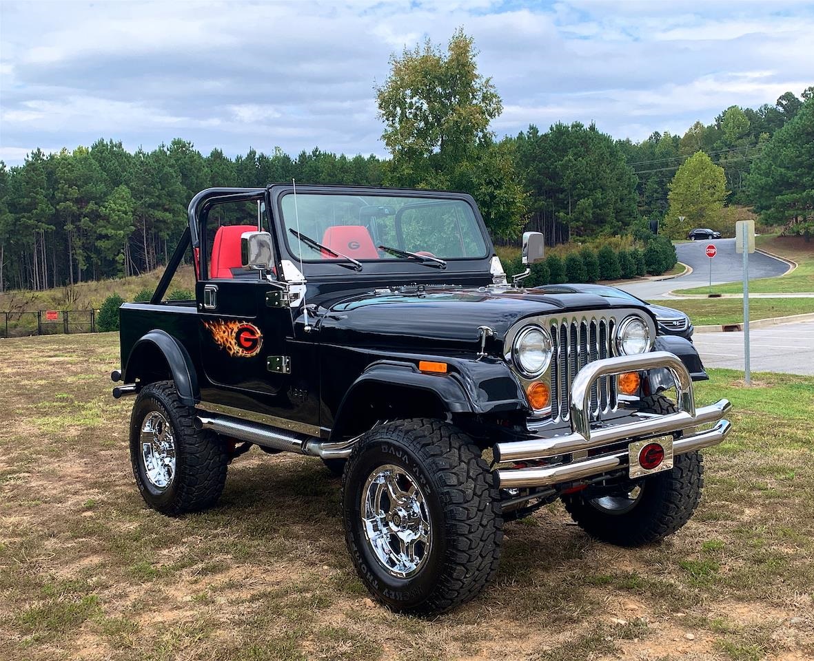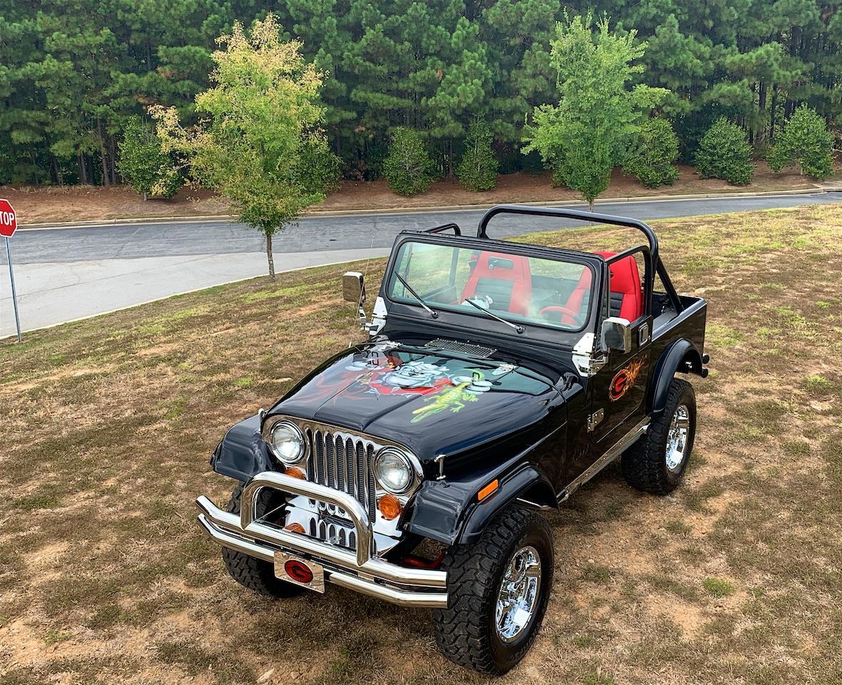 1981 Jeep CJ7 for sale. Powered by a Small block 350 Cubic-inch V-8 and a manual transmission, power and fun is one thing you won't lack. With just enough ride height to still be able to take off-roading, this Jeep will go places most people wish they could go. While your driving down the road with the top off you can enjoy your favorite tunes from the aftermarket stereo that sounds great. Options on this 1981 Jeep CJ-7 for sale are: AM/FM Radio, CD Player, Convertible top Manual, power brakes, power steering, posi-traction, aluminum/alloy wheels and oversized off-road tires.