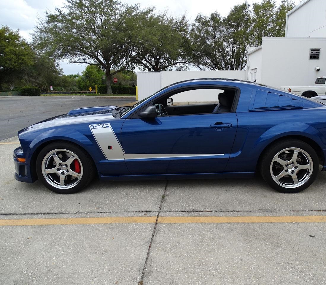 The car is powered by a 4.6-liter supercharged V8 driving through a 5-speed manual transmission. The Rousch 427R package includes, Rouschcharged 4.6 Liter v-8 powertrain system including Rouschcharger, intake manifold, intercooler and radiator, air induction system, Rousch calibrated ECM and more producing 427 HP and 391 lb.-ft of torque. It has a Rousch 4-piece Aerobody Kit, (Front Fascia, Front Chin spoiler, Hood Scoop, and Rear Wing) Lower valance fog lamps, Rousch 18 inch Chrome Wheels with High Performance Tires, High Performance Exhaust, Rousch Fender Badges, Rousch Decklid Emblem, and much more.