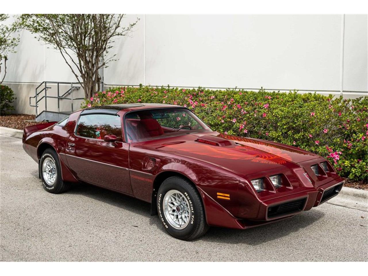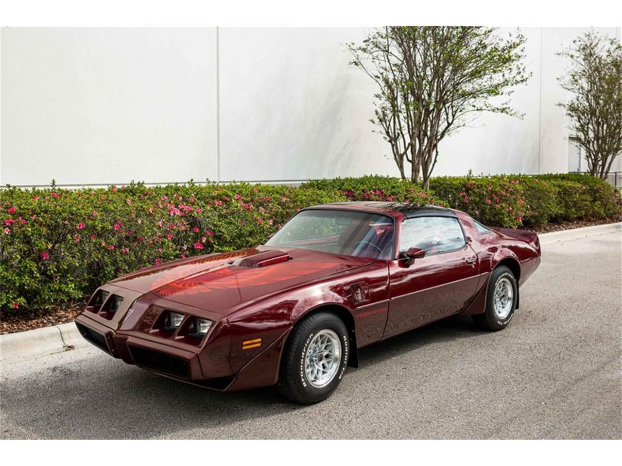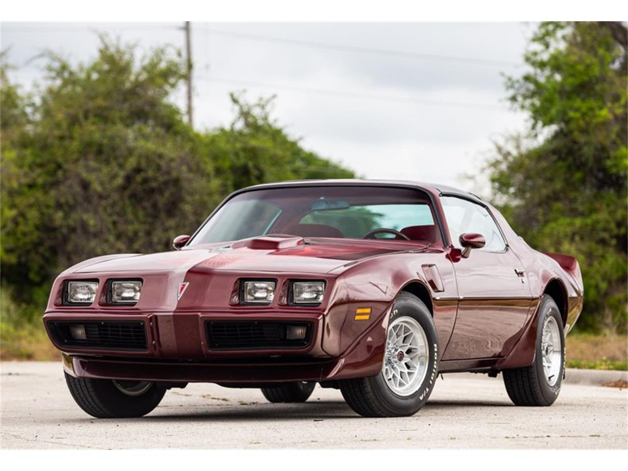 1981 Pontiac Firebird Trans Am all original and in outstanding condition with 28,0000 original miles. Powered by a 5.0 liter V8 engine teamed to a four speed manual transmission and equipped with power steering, power brakes, air conditioning and factory T-tops. The exterior is Autumn Maroon (paint code 77) and the interior is red cloth. New B.F. Goodrich Radial T/A's have recently been installed.