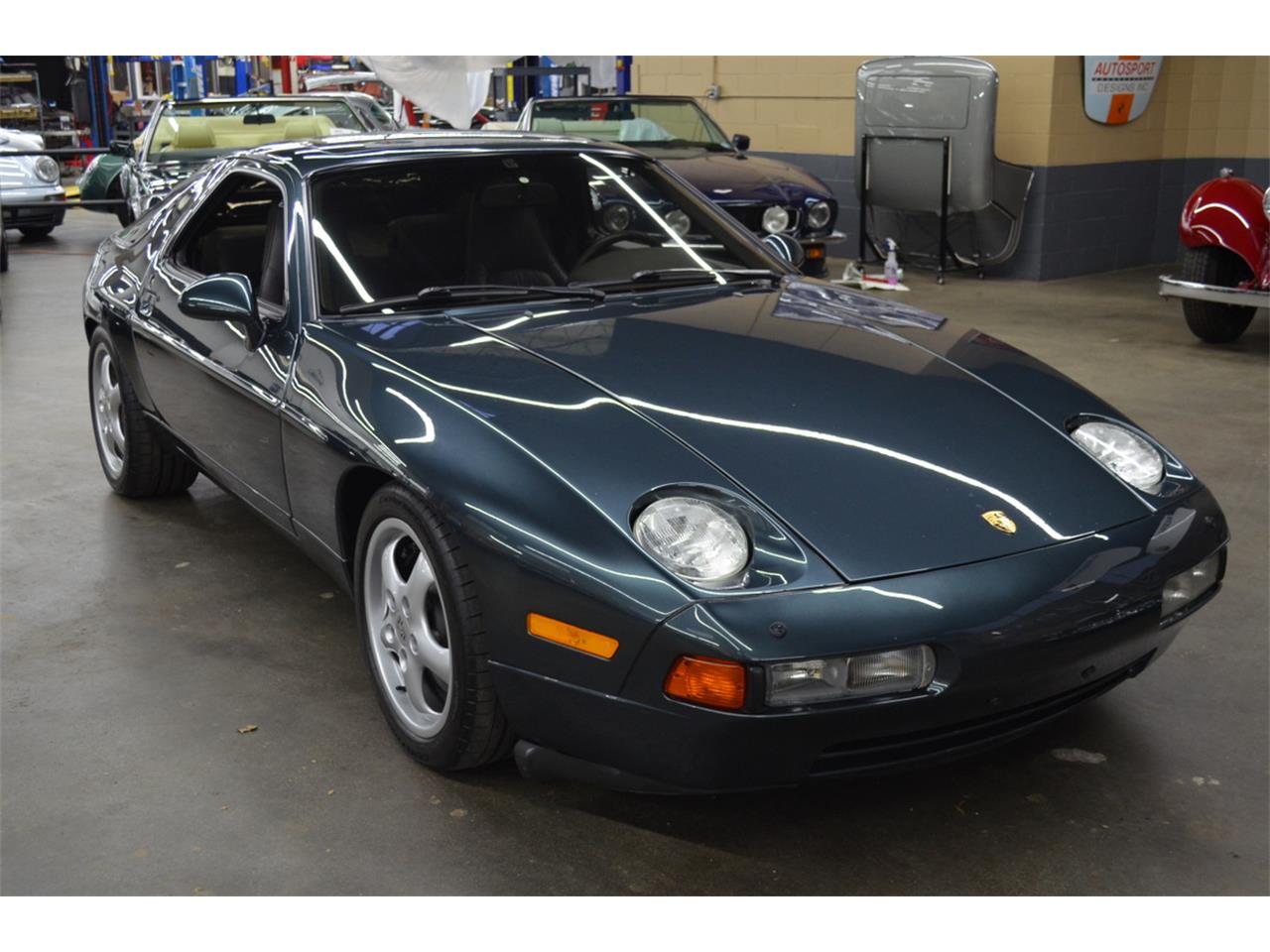 1994 PORSCHE 928 GTS. Aventurine Green metallic, Grey leather interior, Grey carpeting, 5.4 Liter V8 engine, 5 Speed manual transmission, 71,000 Miles, Serviced. Factory options include supple leather seats, Protection side moldings, Electric Sunroof, 6 Disc remote CD changer, Cellular phone with Console, Classic Grey, Sport shock absorbers, Increased air conditioning, AM FM Radio with Cassette player, Velour floor mats. Classic Grey, US Standard Emissions.