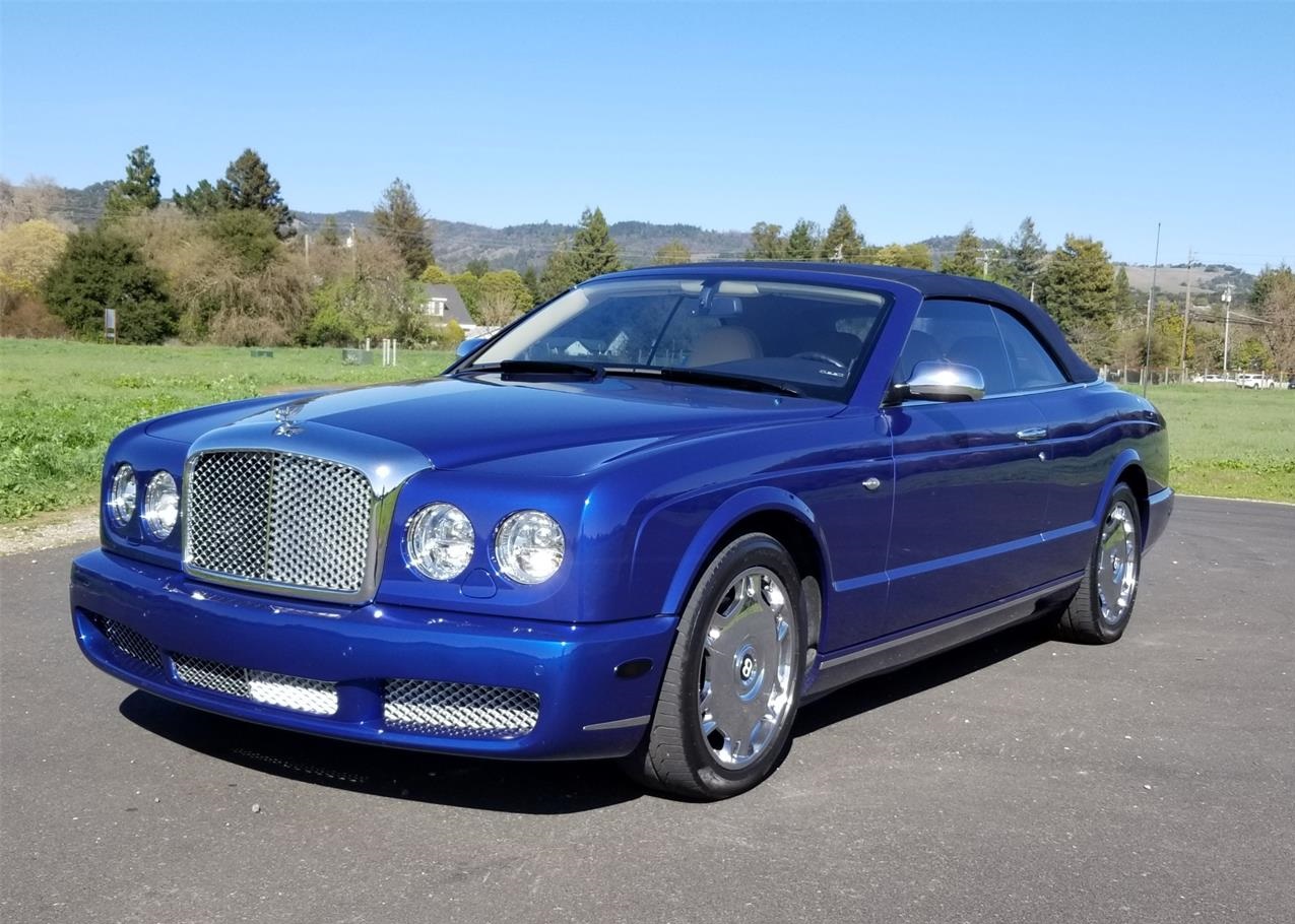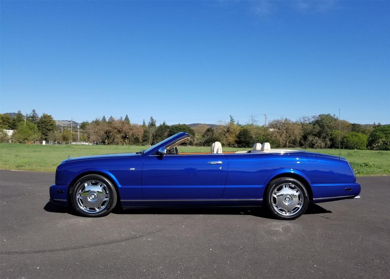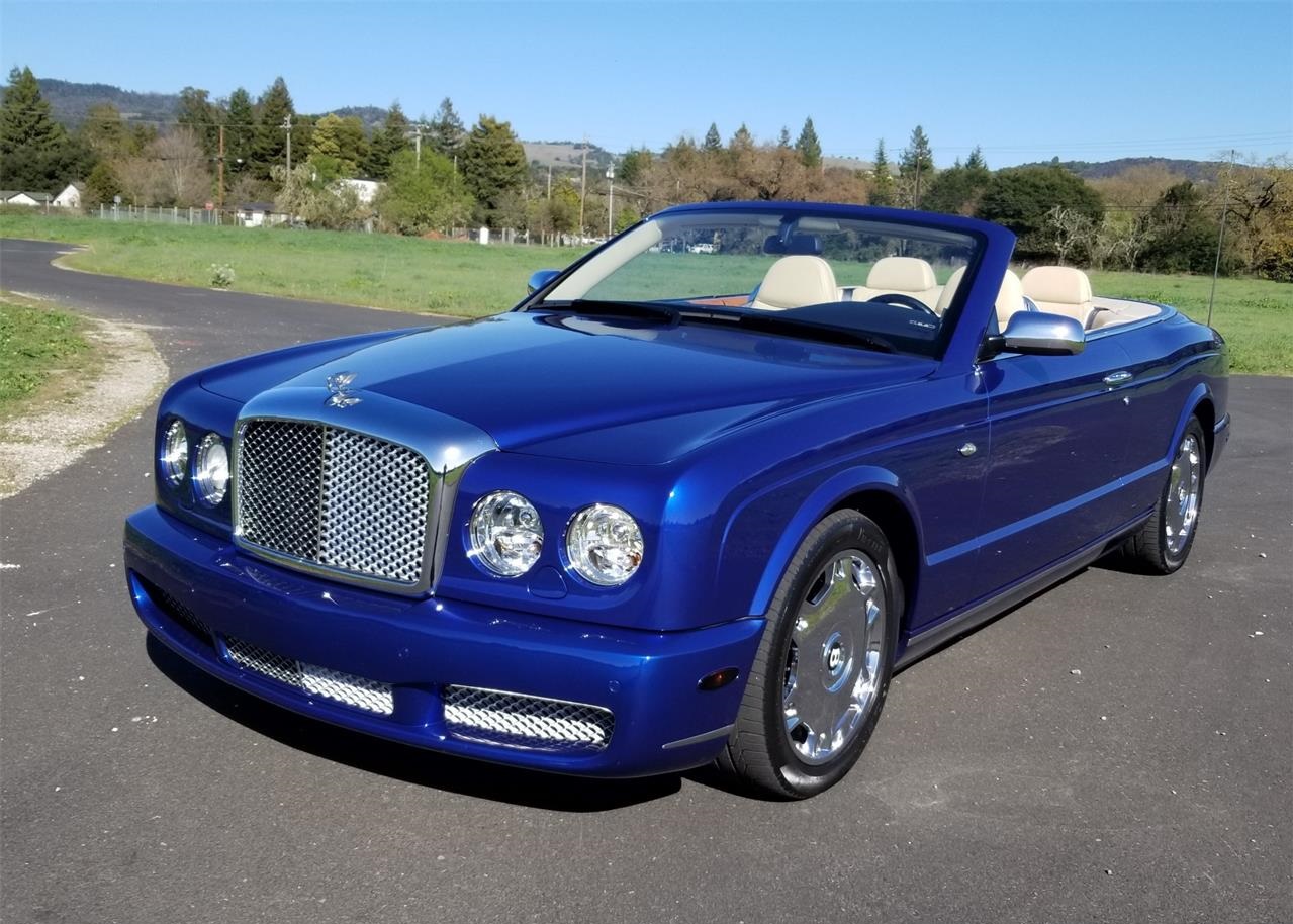 Beautiful 2007 Bentley Azure Convertible for sale finished in gorgeous Moroccan blue with Magnolia hydes and Elm Burl Veneer. Its powerful 6.8L 16 valve V8 purrs. The brakes, suspension, and handling all operate flawlessly. The car is dry underneath and in excellent mechanical condition. The exterior is stunning in every way with a deep shine and razor-straight body wearing its original Moroccan blue paint, lovely trim, chrome, and glass all around. The Magnolia leather interior is equally as lovely with outstanding Elm Burl Veneer, trim, chrome bezels & switches and wool rugs.